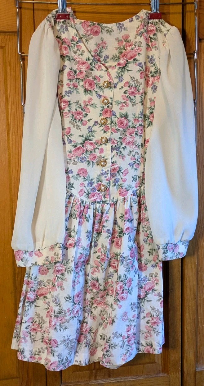 как выглядит Swat Girls Multicolor Long Sleeve Floral Dress Faux Pearl Buttons USA Vtg Sz 6x фото