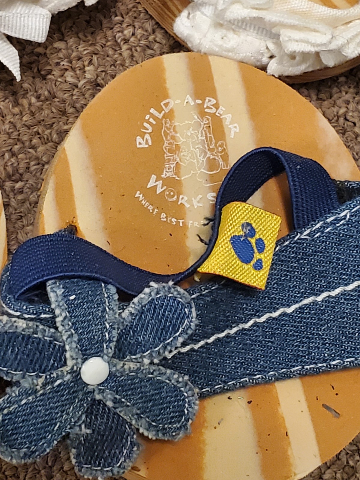 Build A Bear Workshop, 2 pairs of sandals, 1 denim 1 white, used condition