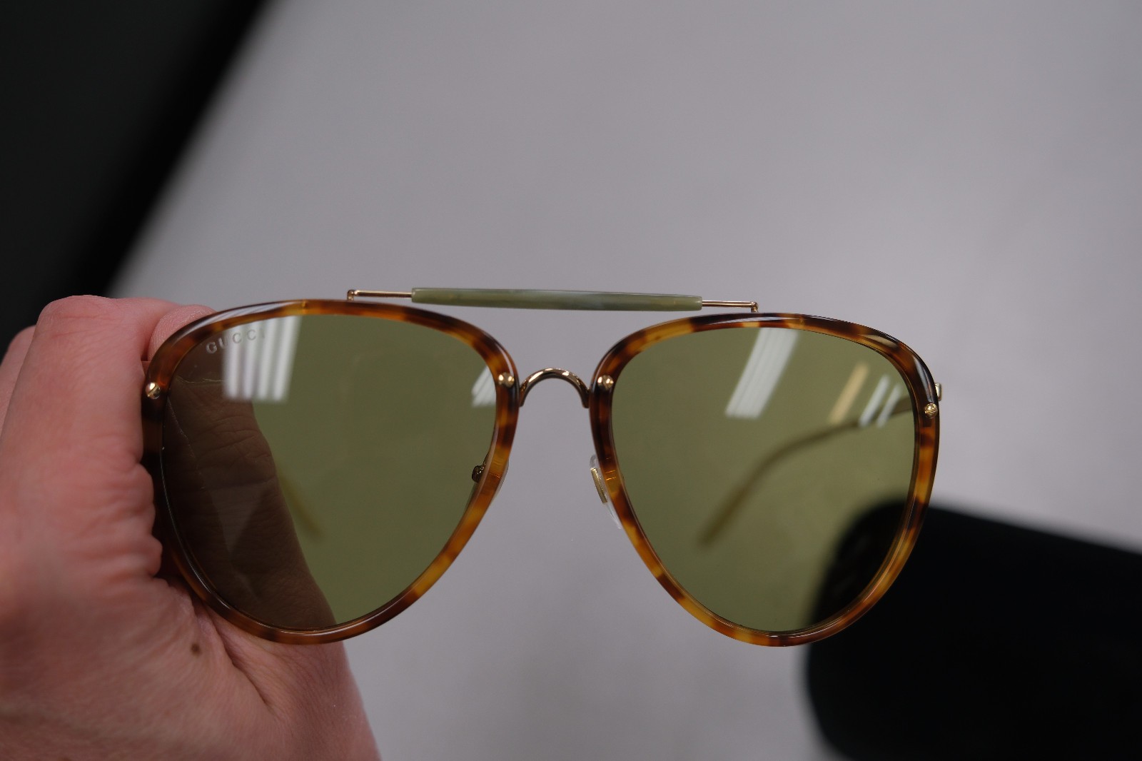 как выглядит GUCCI Aviator Sunglasses Tortoise GG0672S Havana w/ Case Free Shipping фото