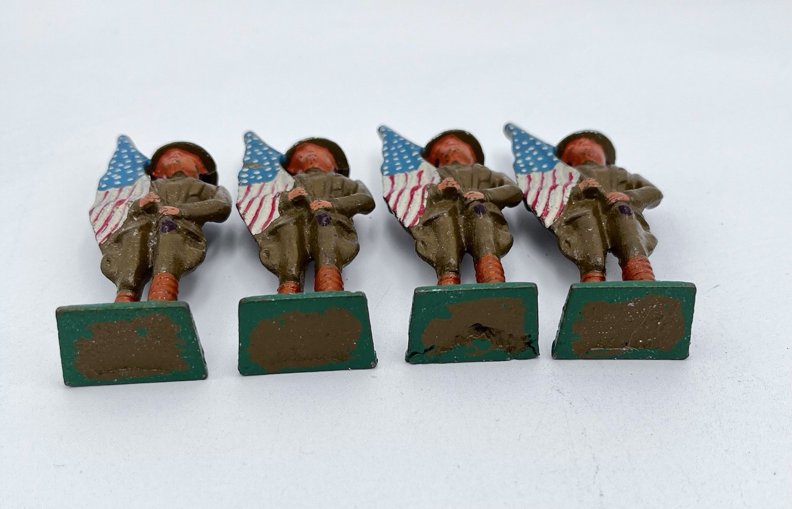 как выглядит Vtg Lot Of Barclay Manoil WWII Soldiers Flag Trumpet Fence Very Nice фото