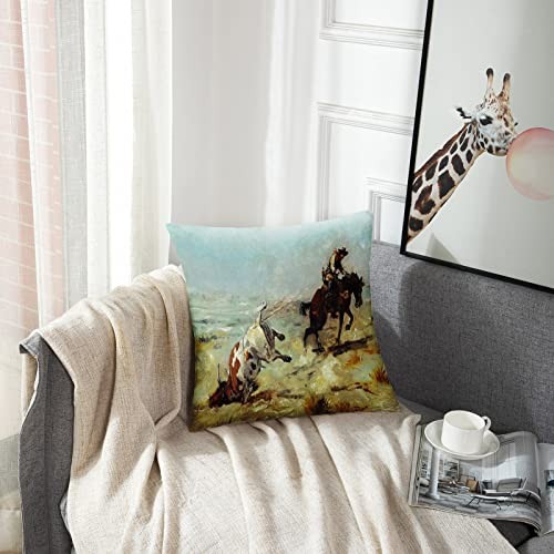 Throw Pillow Cover Cowgirl Vintage Western Cowboy Roping Steer 18 x 18