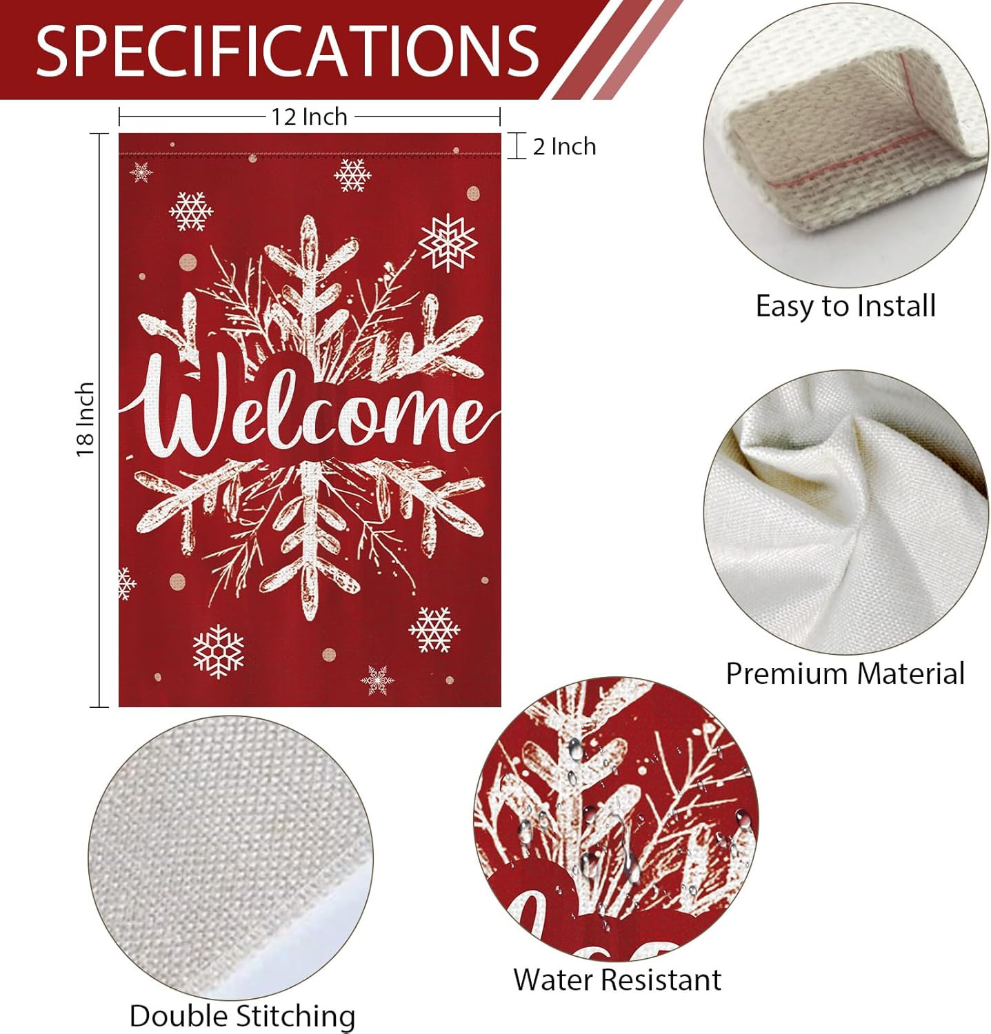 Christmas Winter Welcome Garden Flag 12X18 Inch Double Sided Burlap, Winter Snow