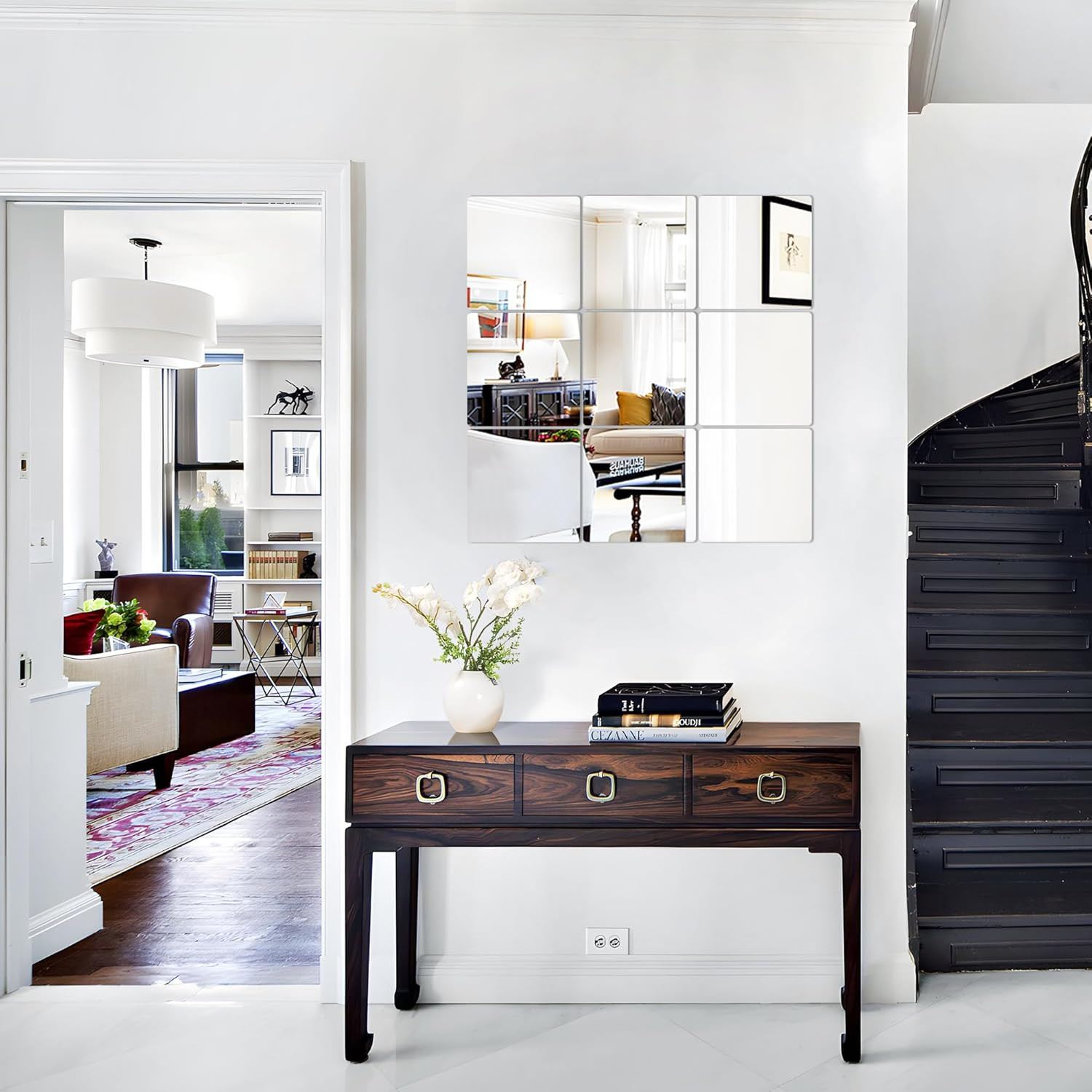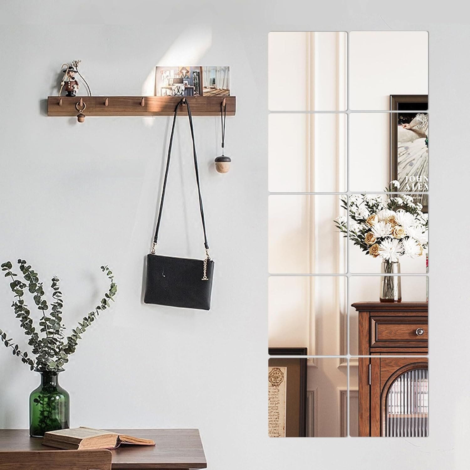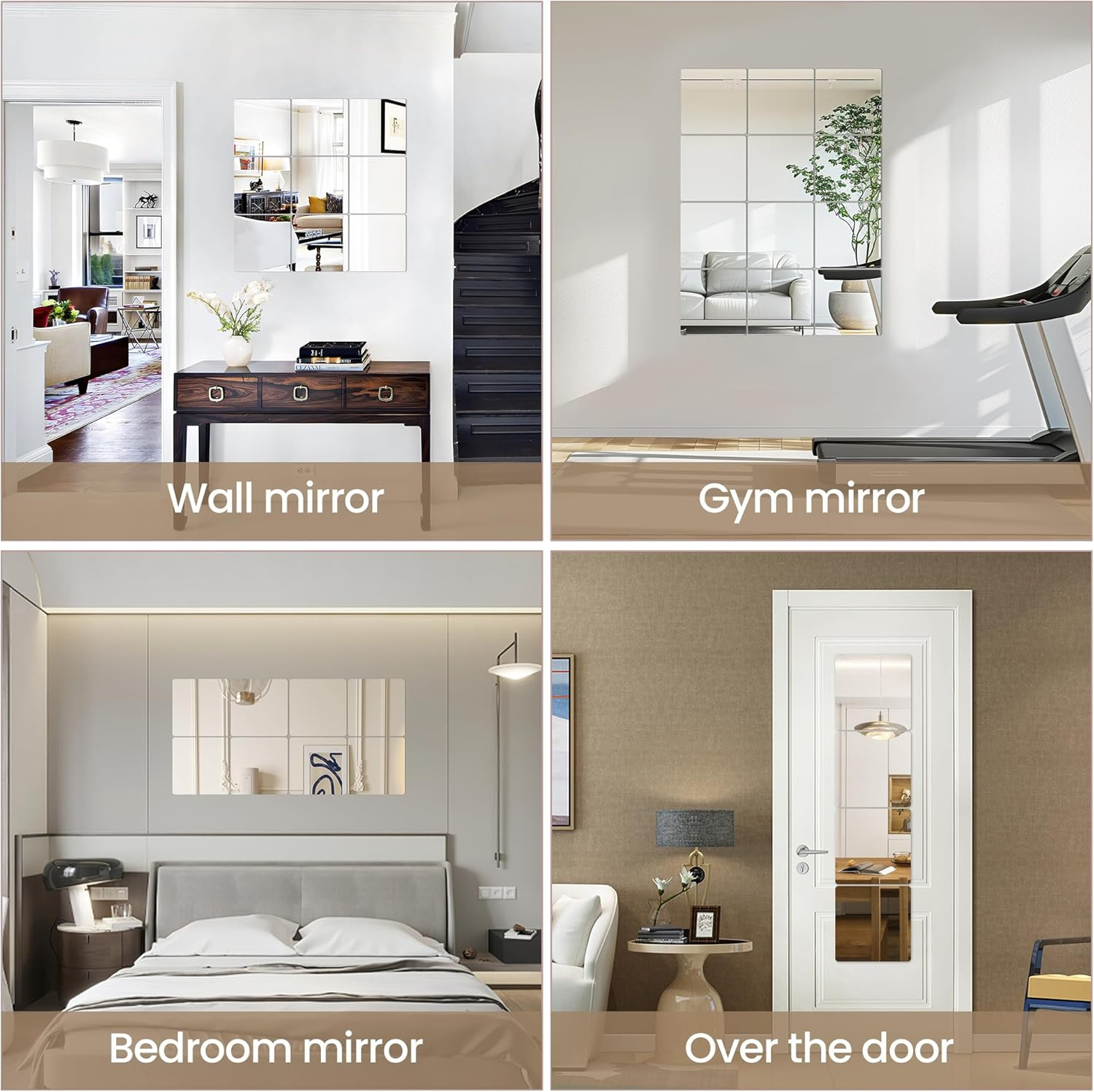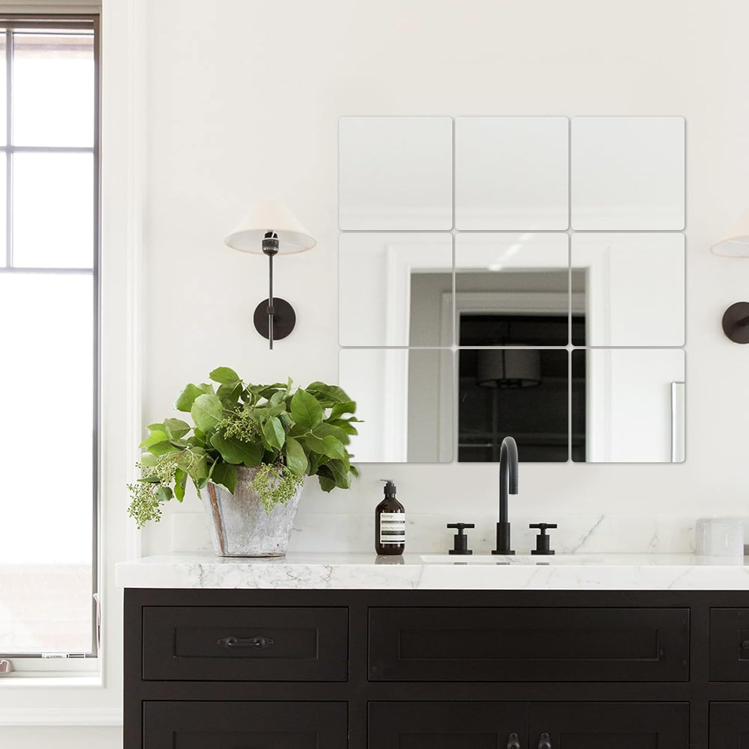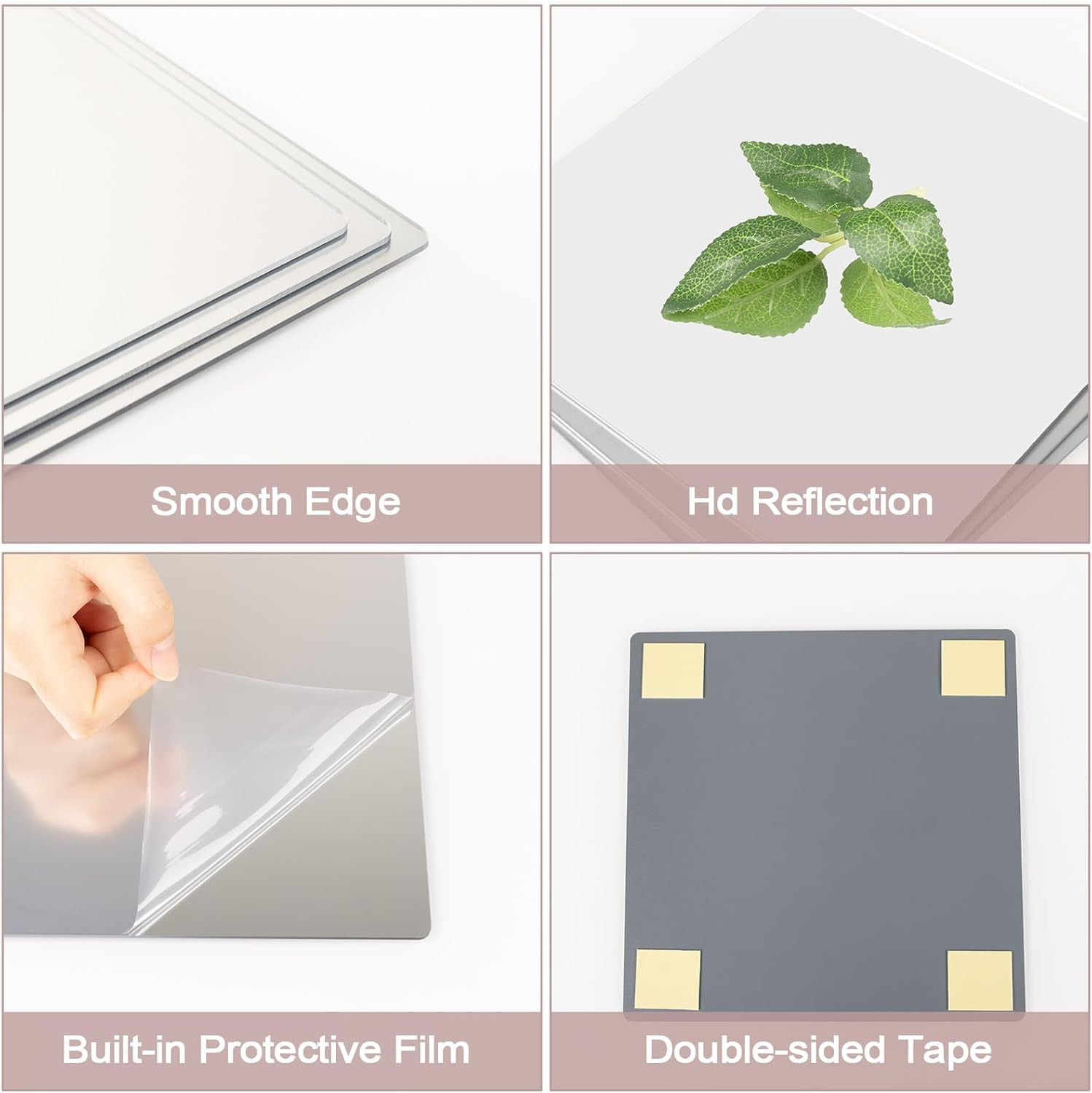 4 Pack Peel and Stick Mirrors for Wall, Self Adhesive Square Acrylic Mirror Tile