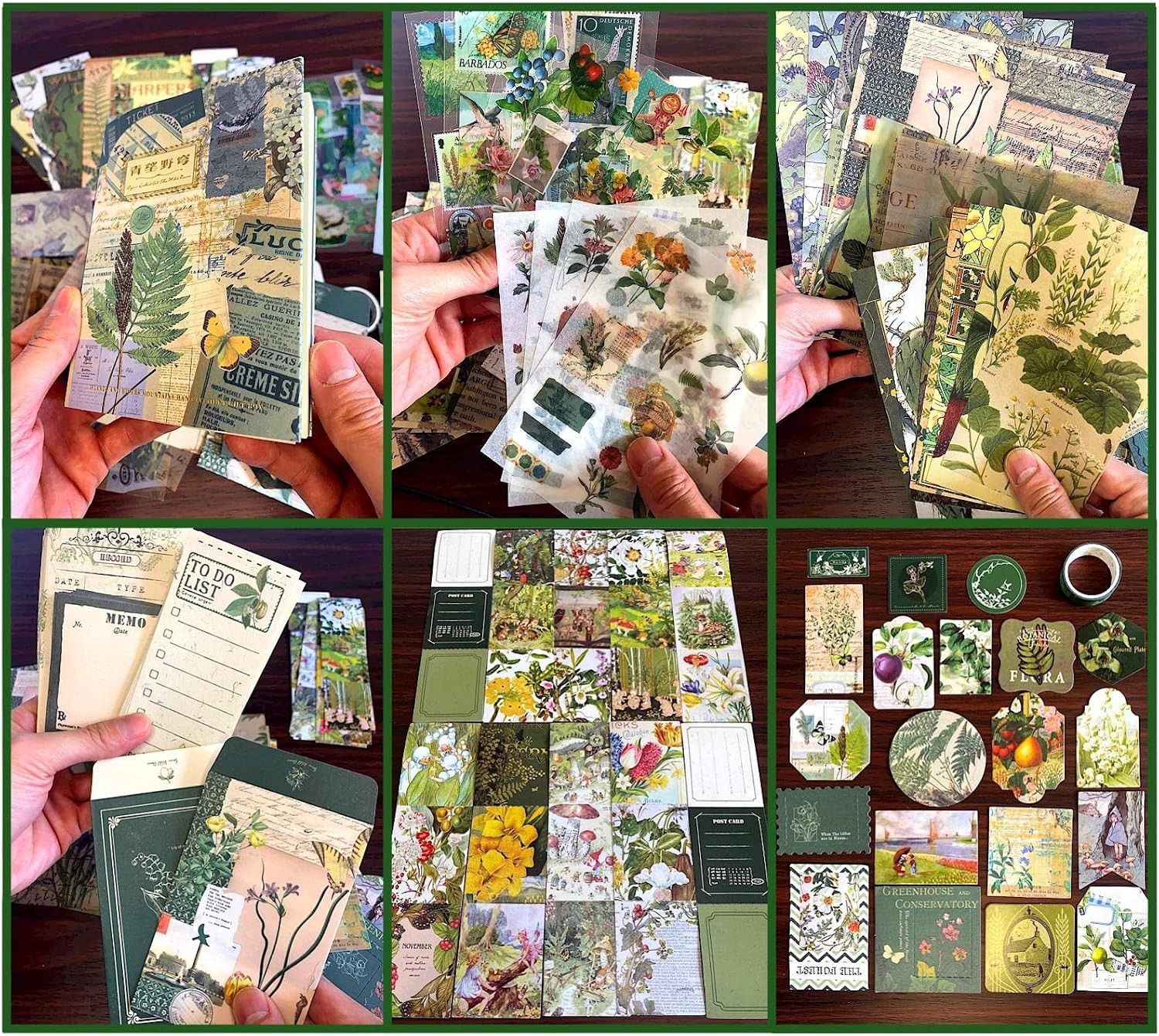 Scrapbooking Supplies Kit,Vintage Botanical Aesthetic Scrapbook Kit,Bullet Junk