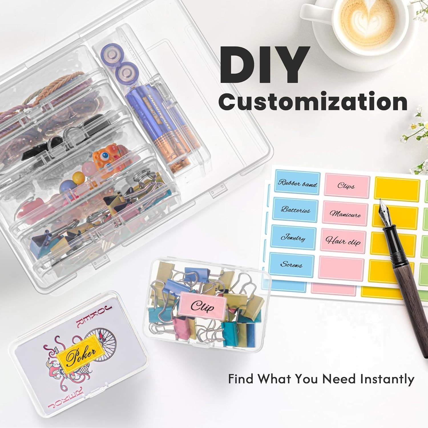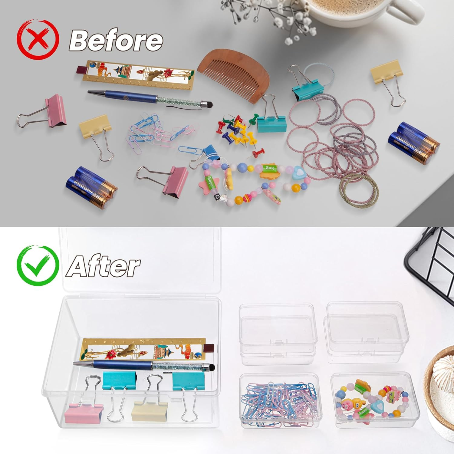 Large Plastic Storage Boxes, 6 Clear Containers with Hinged Lids, for Playing Ca