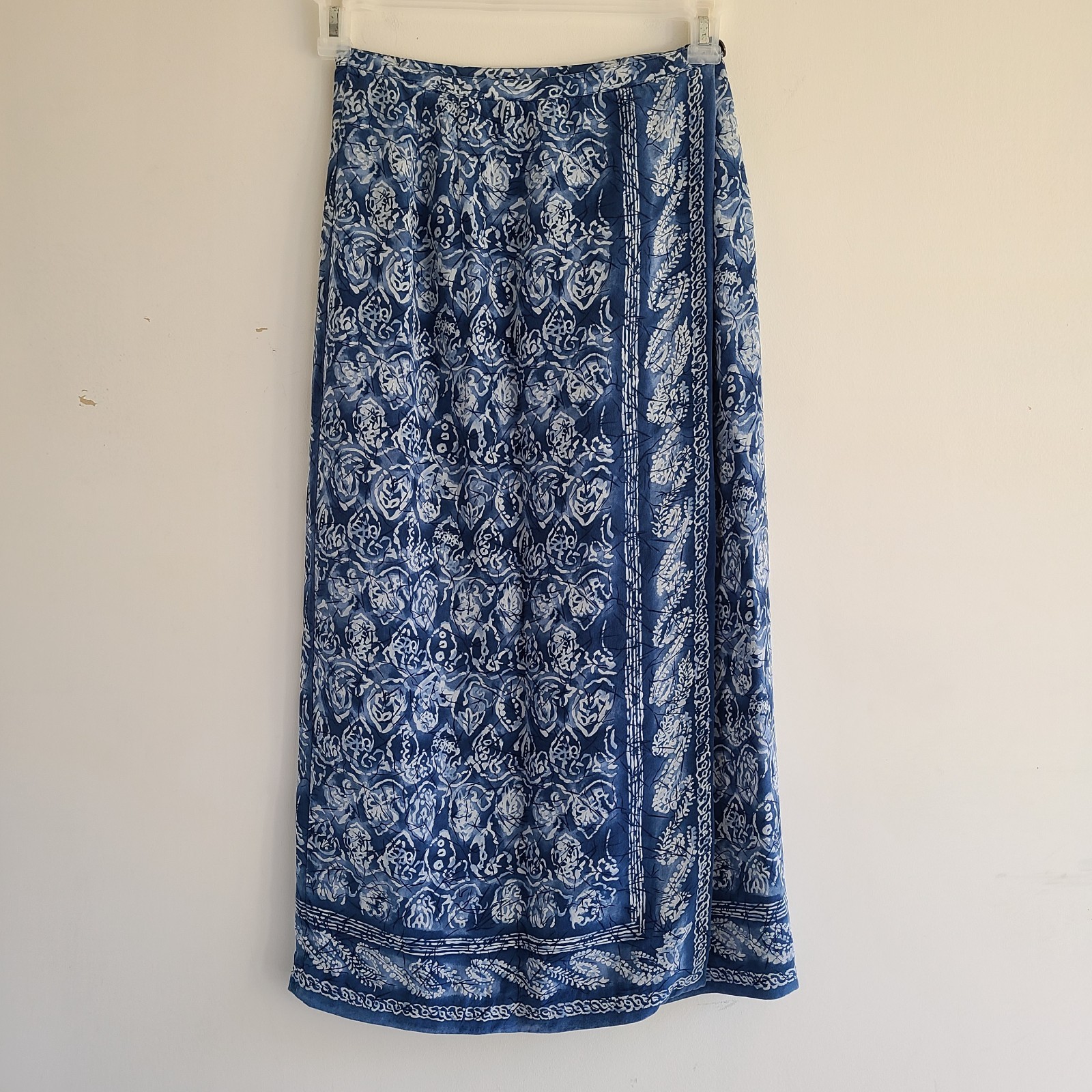 Vintage 100 Silk Midi Wrap Skirt 4 Blue Straight Waist 24 Classic Charter Club