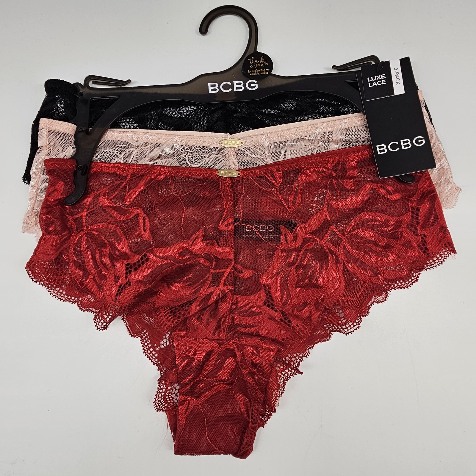 BCBG 3 Pack Women's S M L XL Luxe Lace Cheeky Breathable Panties Black Pink Red
