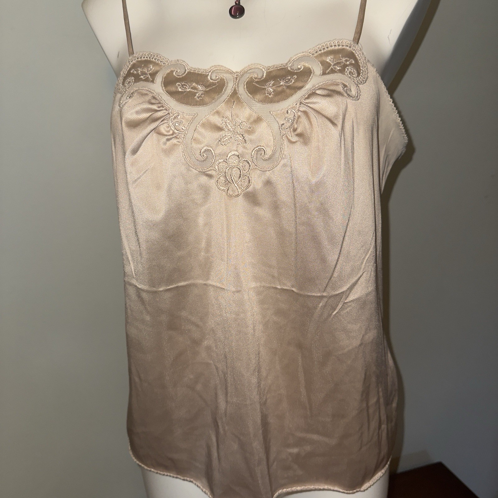 Vanity Fair Camisole Slip Top Beige Nylon Lace Cami Women s Sz 34 Cottagecore