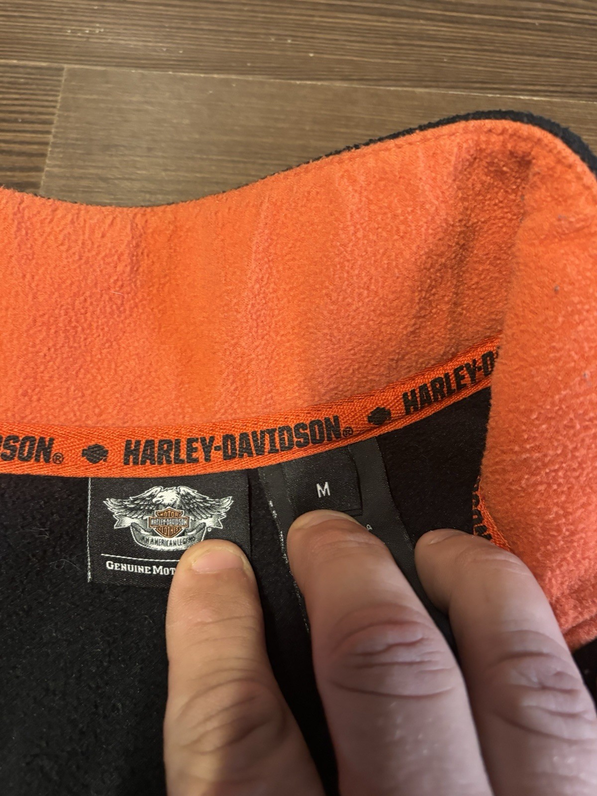 как выглядит Harley Davidson Men s Medium Black Embroidered Fleece 1/4 Zip Pullover Sweater фото