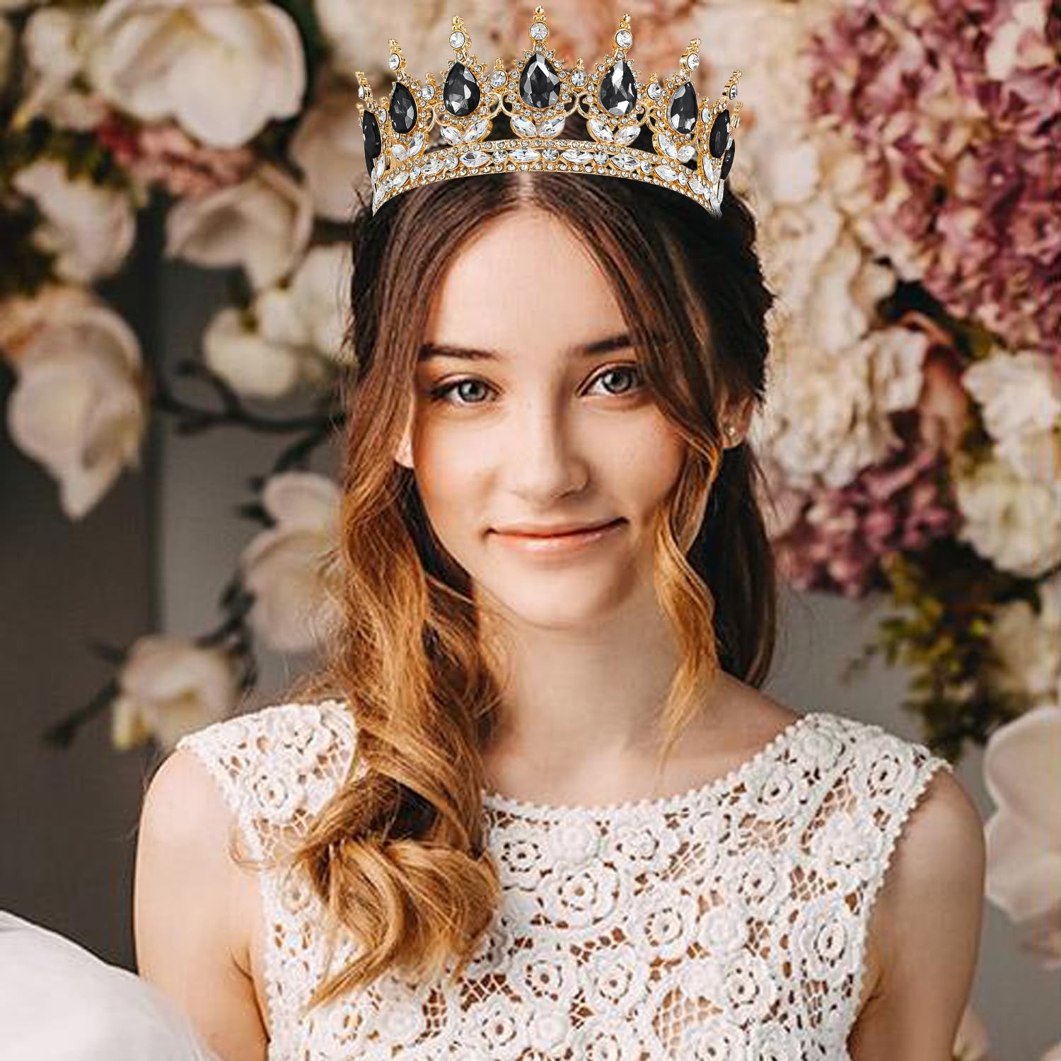 Aprince Tiara Crowns for Women Crystal Queen Crown Princess Gold Black