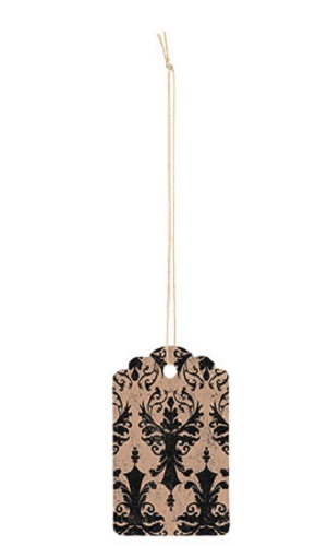 2000 Strung Price Tags 1 1/2 x 1 Distressed Damask Black Tan White Back String