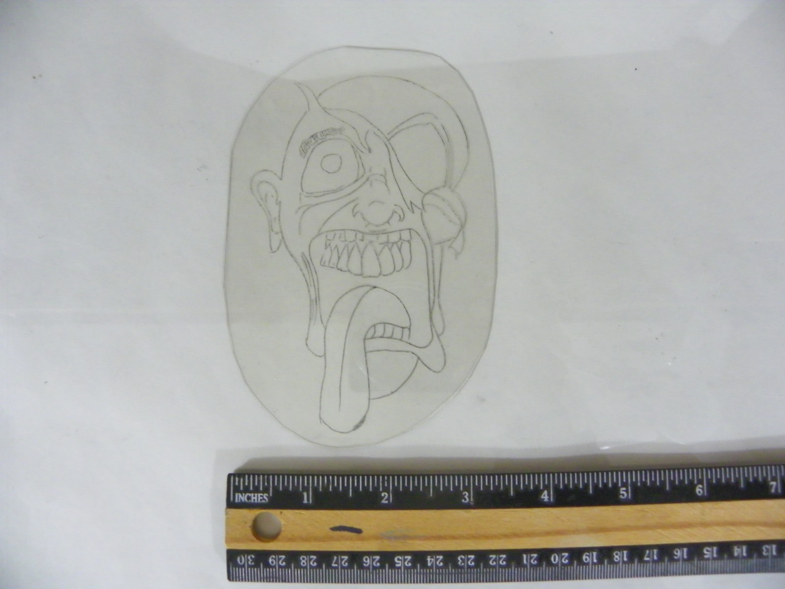 как выглядит Vintage Acetate Stencil "Bad Day skull". 80s Tattoo stencil. фото
