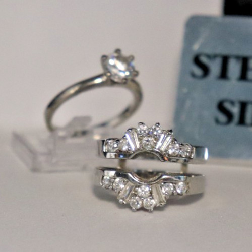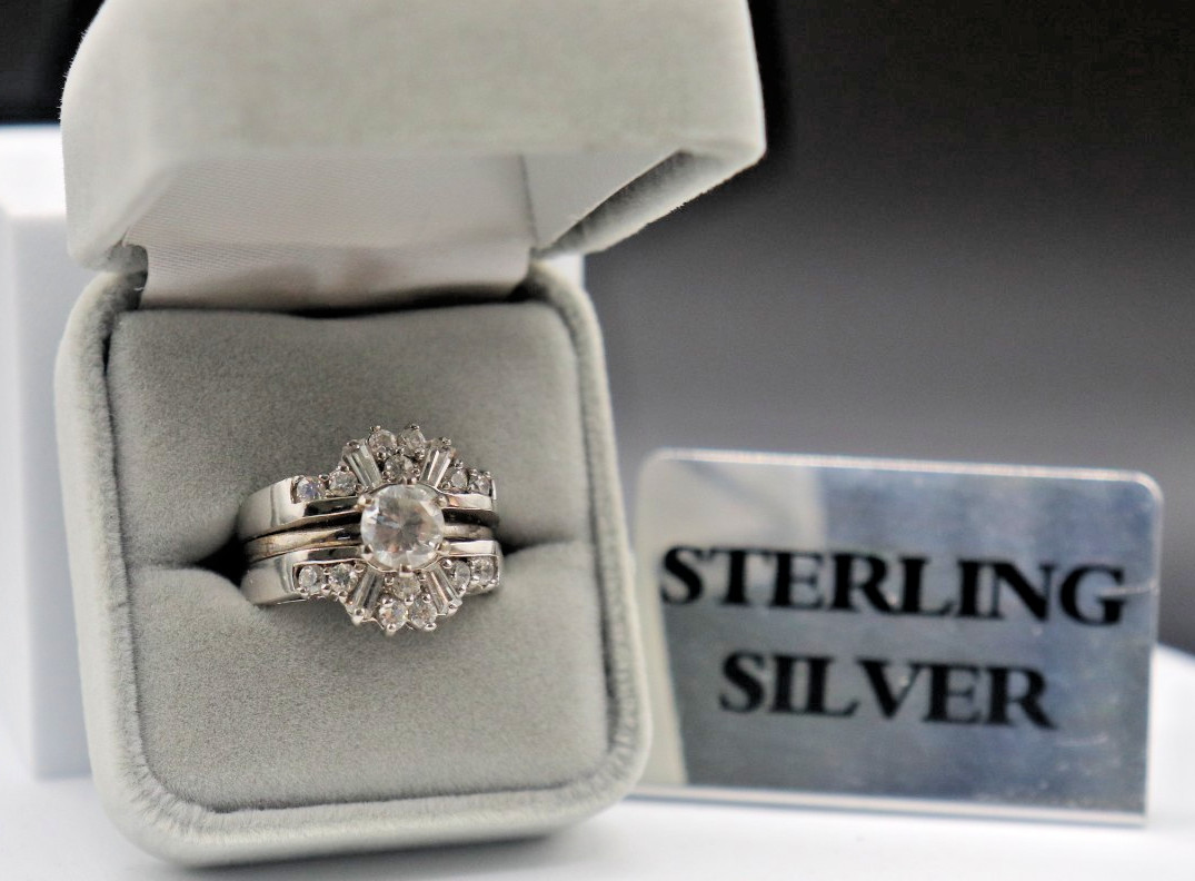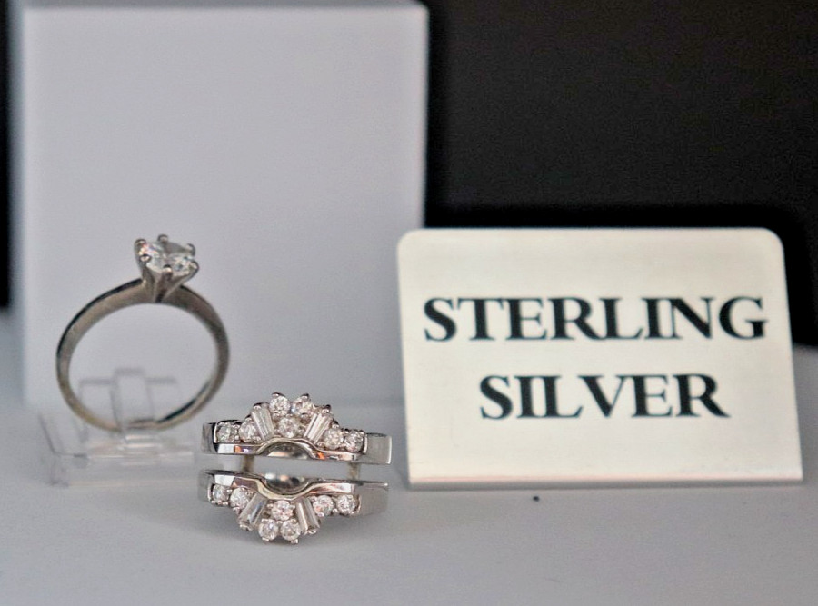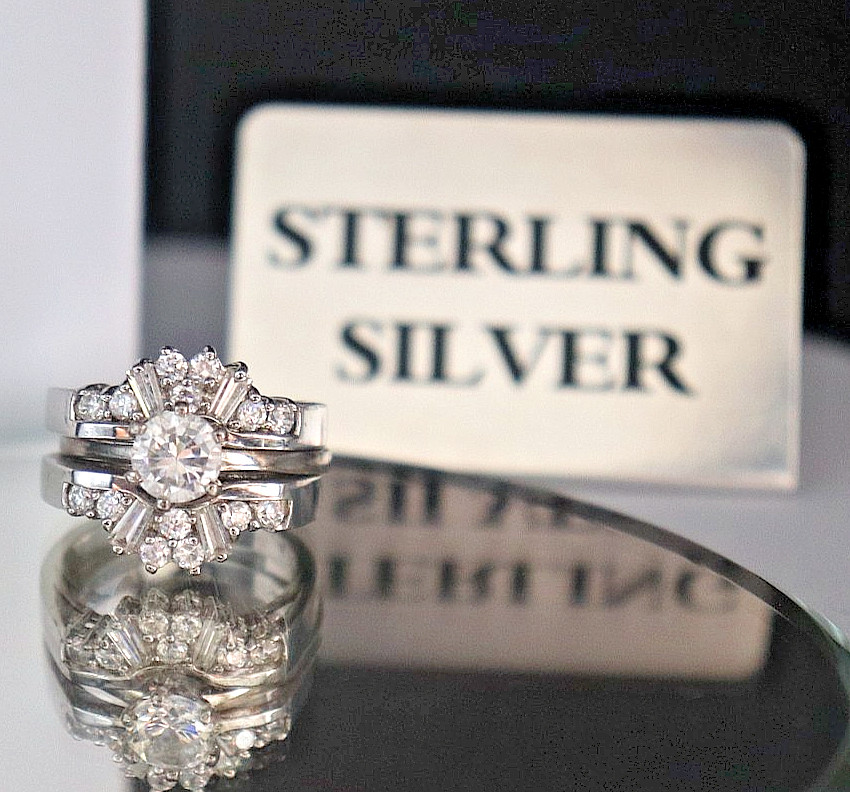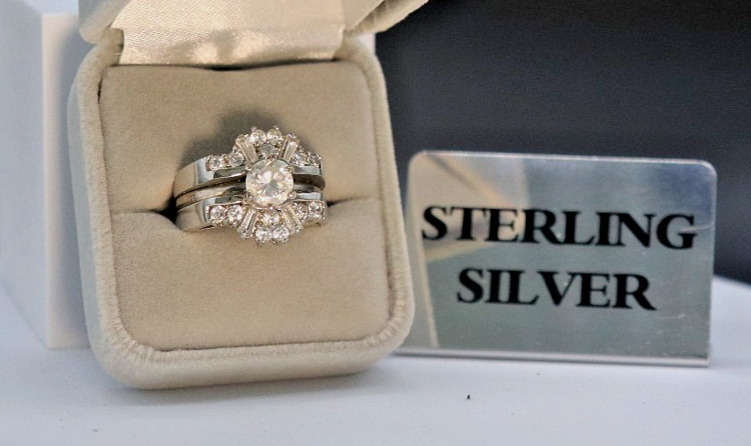 Sterling Silver Cubic Zirconia Solitaire Insert-Vacation Wedding Set Sz 6.5