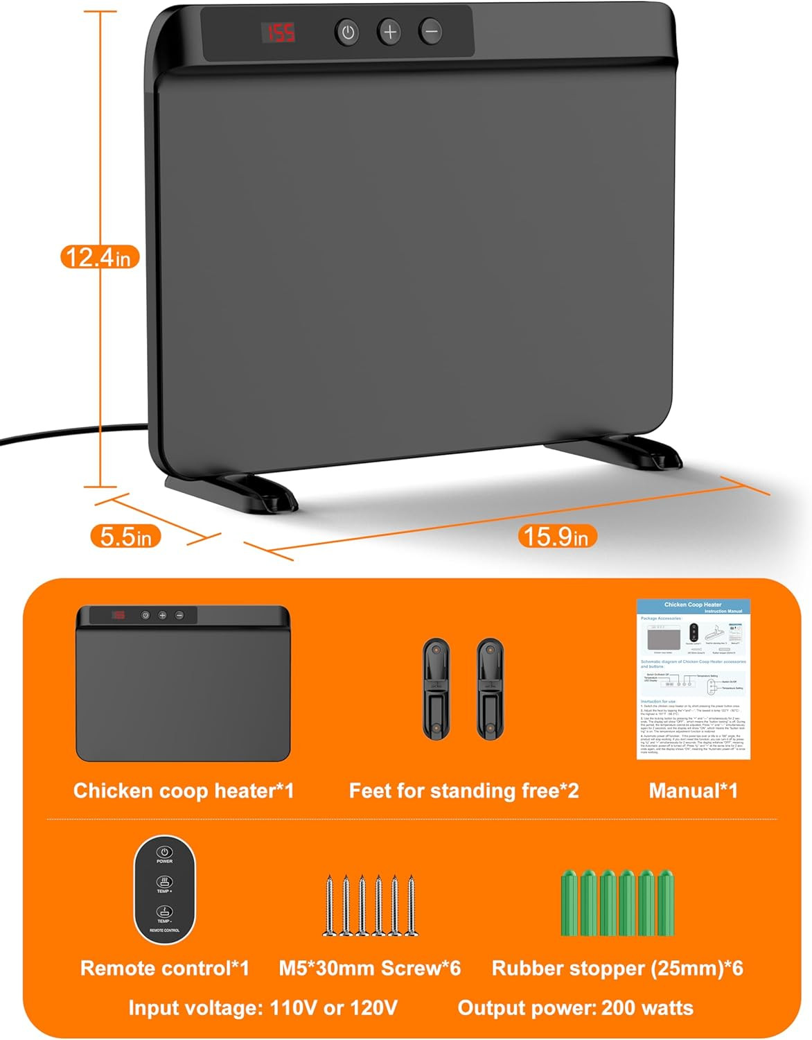 2025 Smart Chicken Coop Heater with Adjustable Temperature Remote Control, 200 W