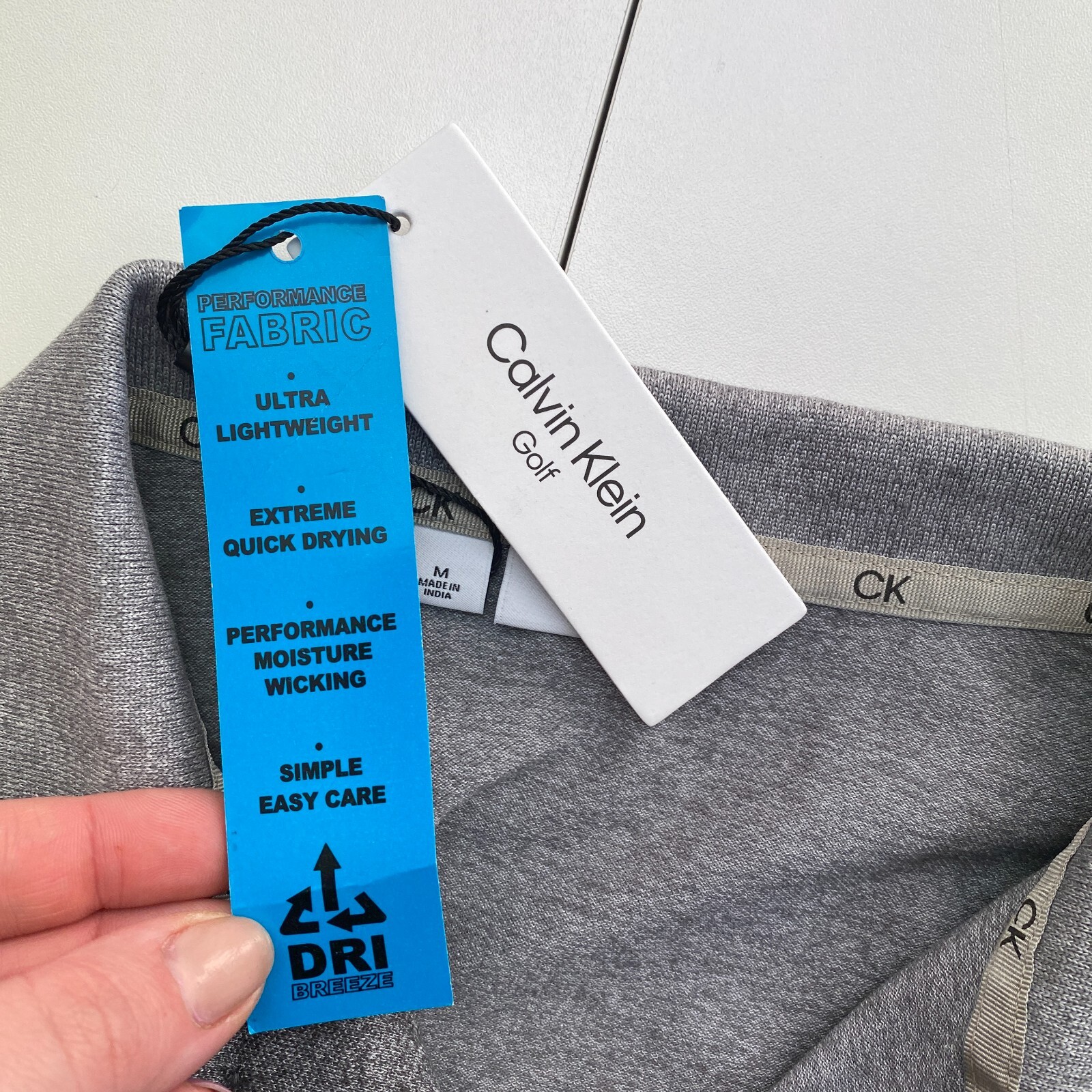 как выглядит CALVIN KLEIN GOLF Men Grey Solid Short Sleeves Polo Shirt Size M фото