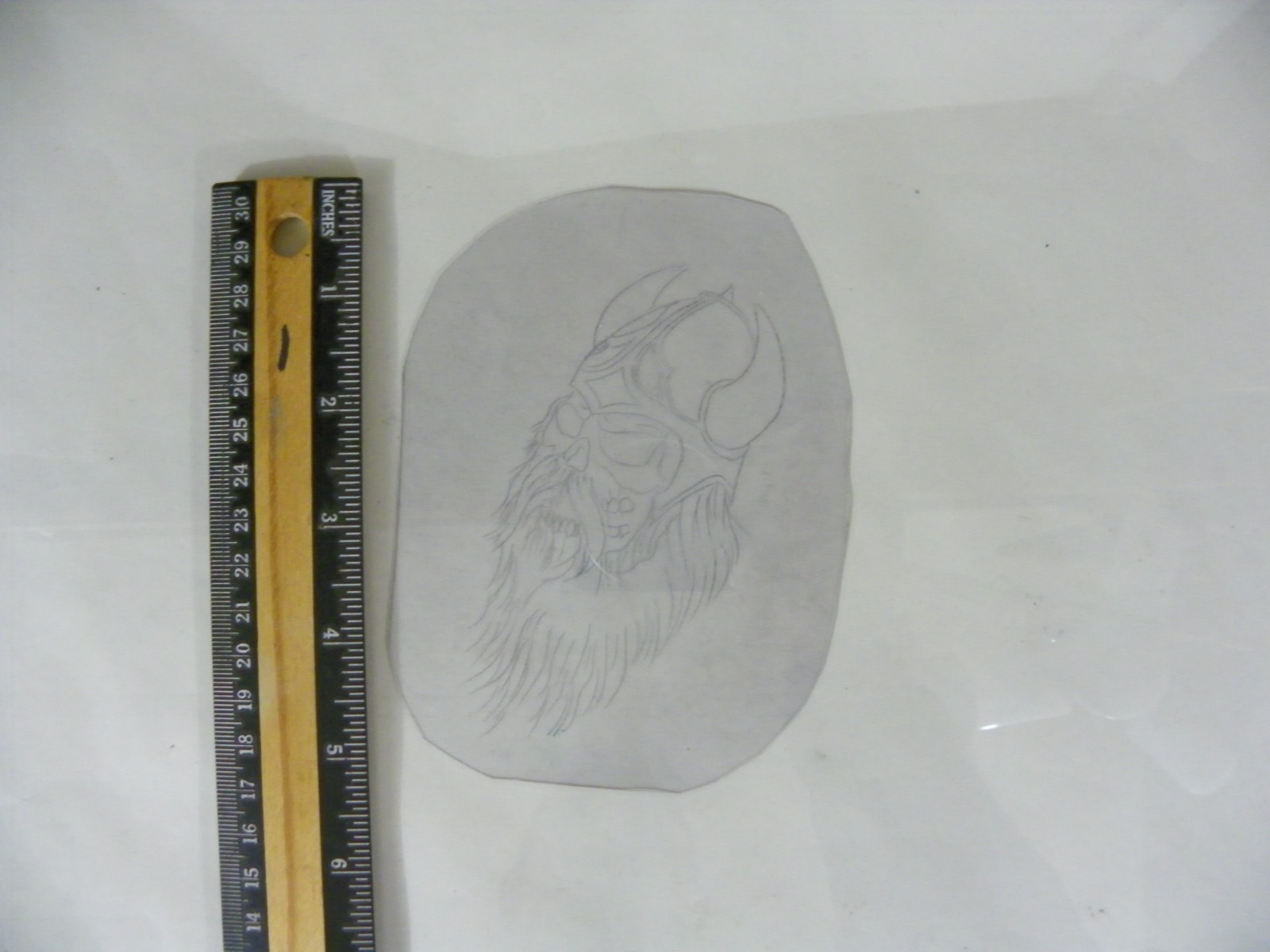 как выглядит Vintage Acetate Stencil "Viking skull". Tattoo stencil. фото