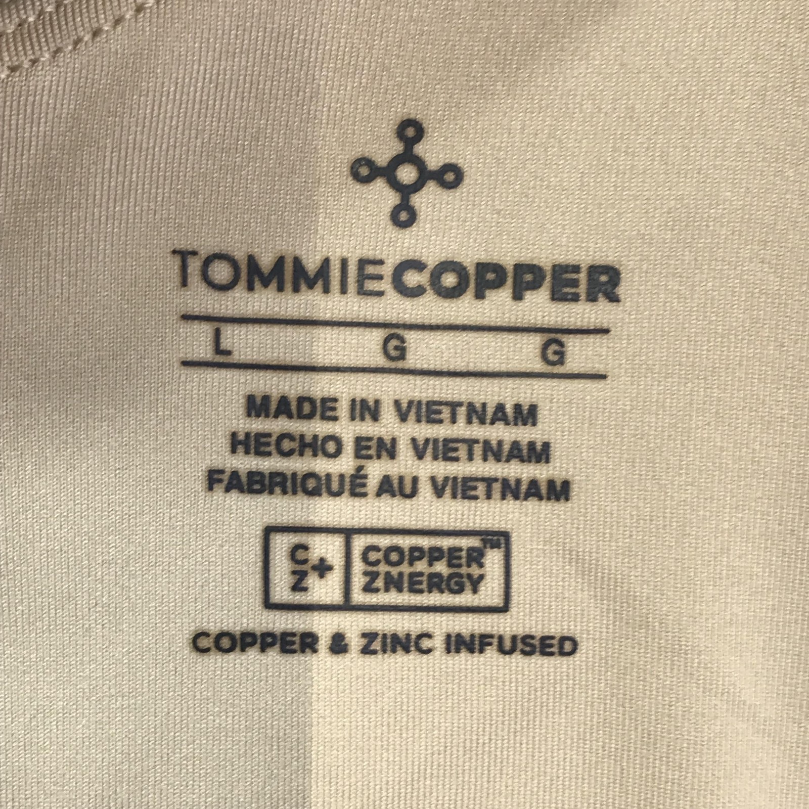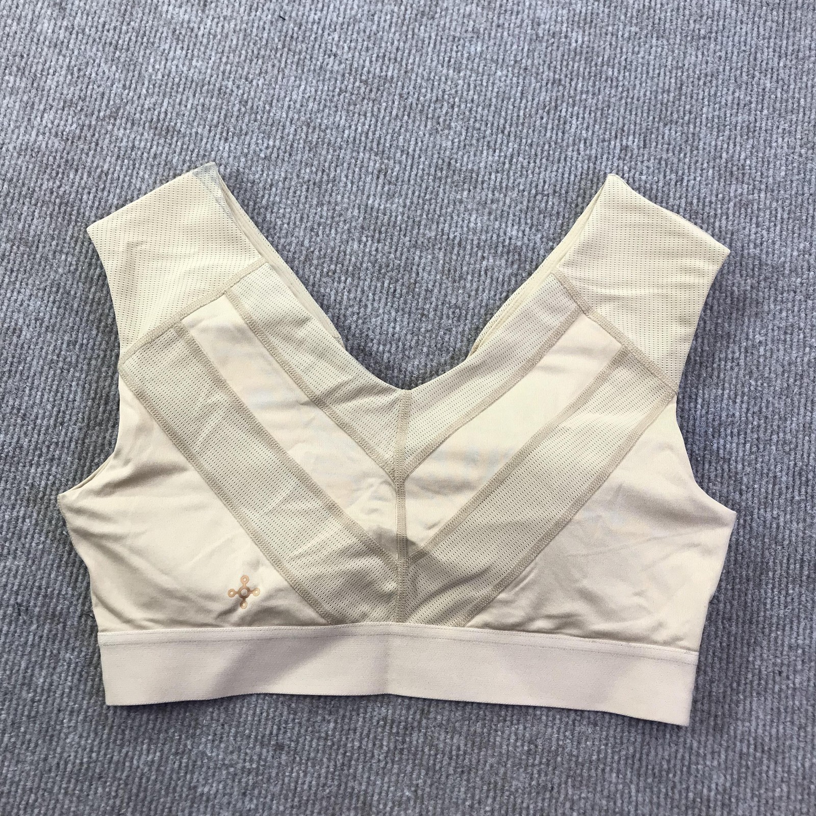 Tommie Copper Sports Bra Womens Large Beige Shoulder Support Copper Znergy Mesh