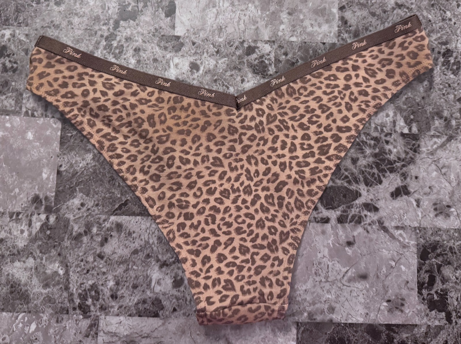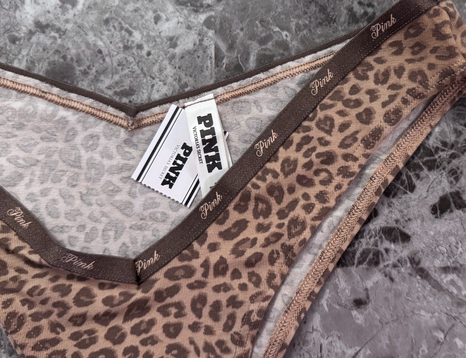 NWT VICTORIA'S SECRET PINK LEOPARD LOGO BAND V STYLE TANGA CHEEKY PANTIES