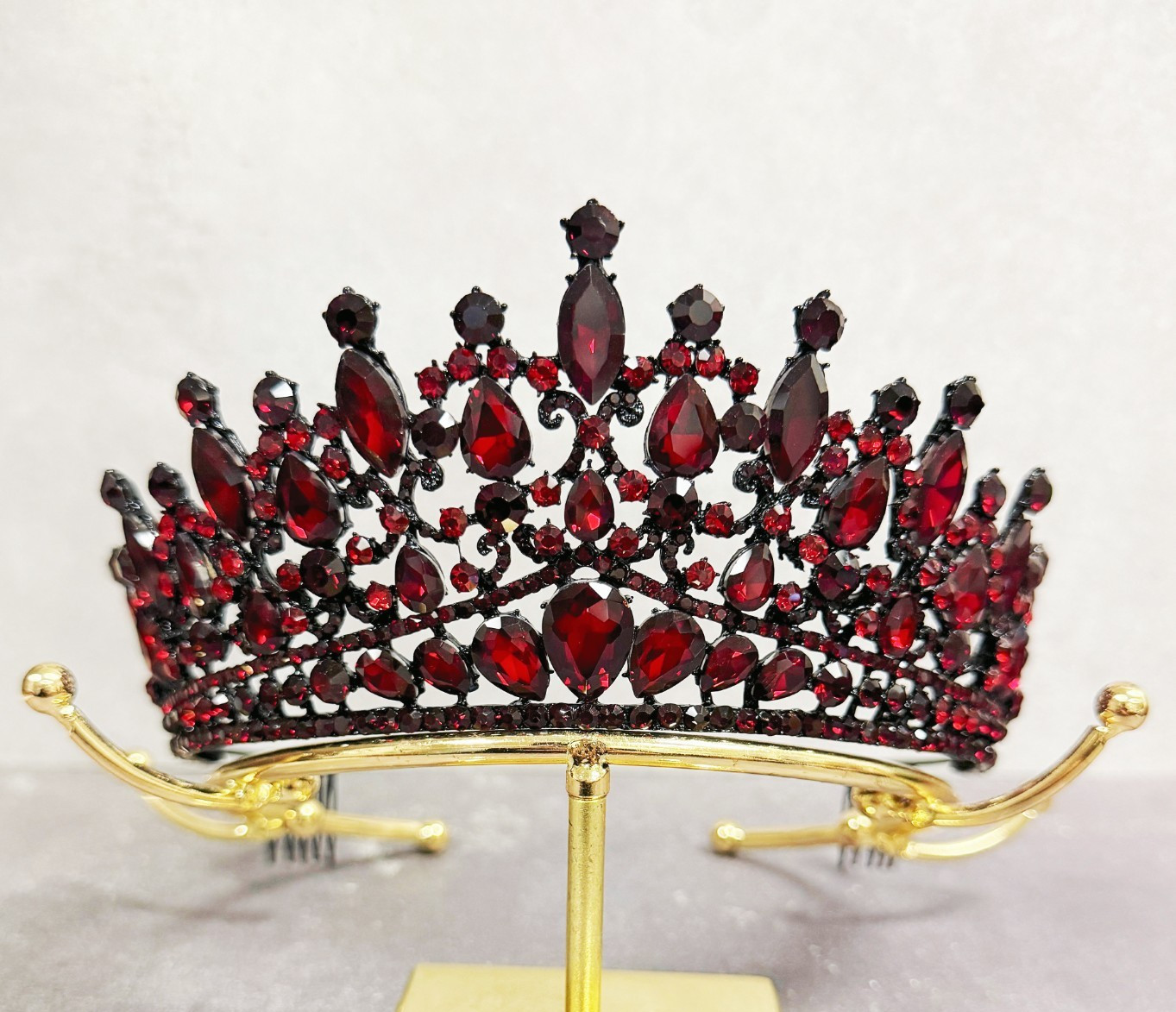как выглядит Red Crystal Tiara, Black comb tiara, vintage crystal crown, Prom hair jewelry фото