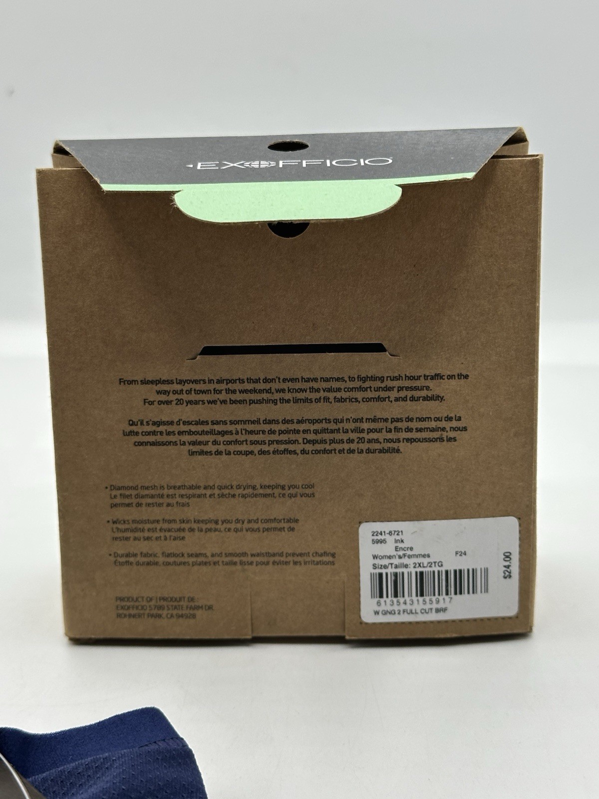 ExOfficio Women s Give-N-Go Full Cut Brief Sz 2XL Travel Ink pk Of 3