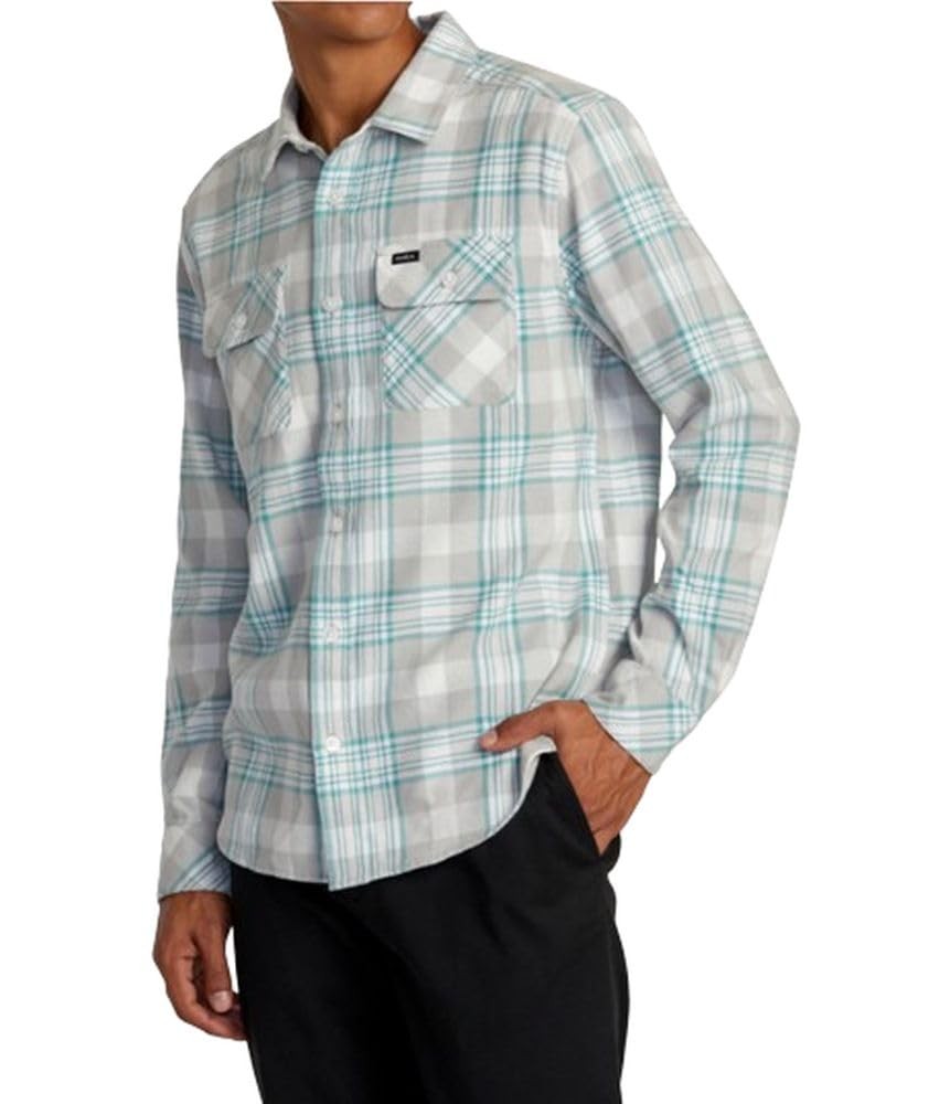 RVCA Mens Woven Button Front Shirt That'll Work Flannel Silver Bleach 2XL
