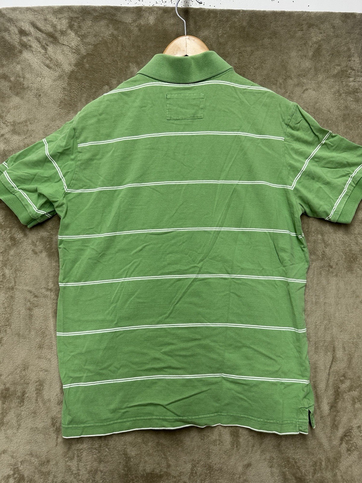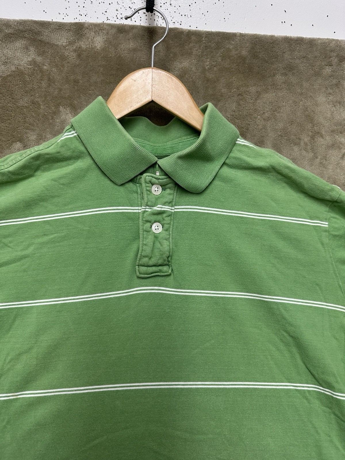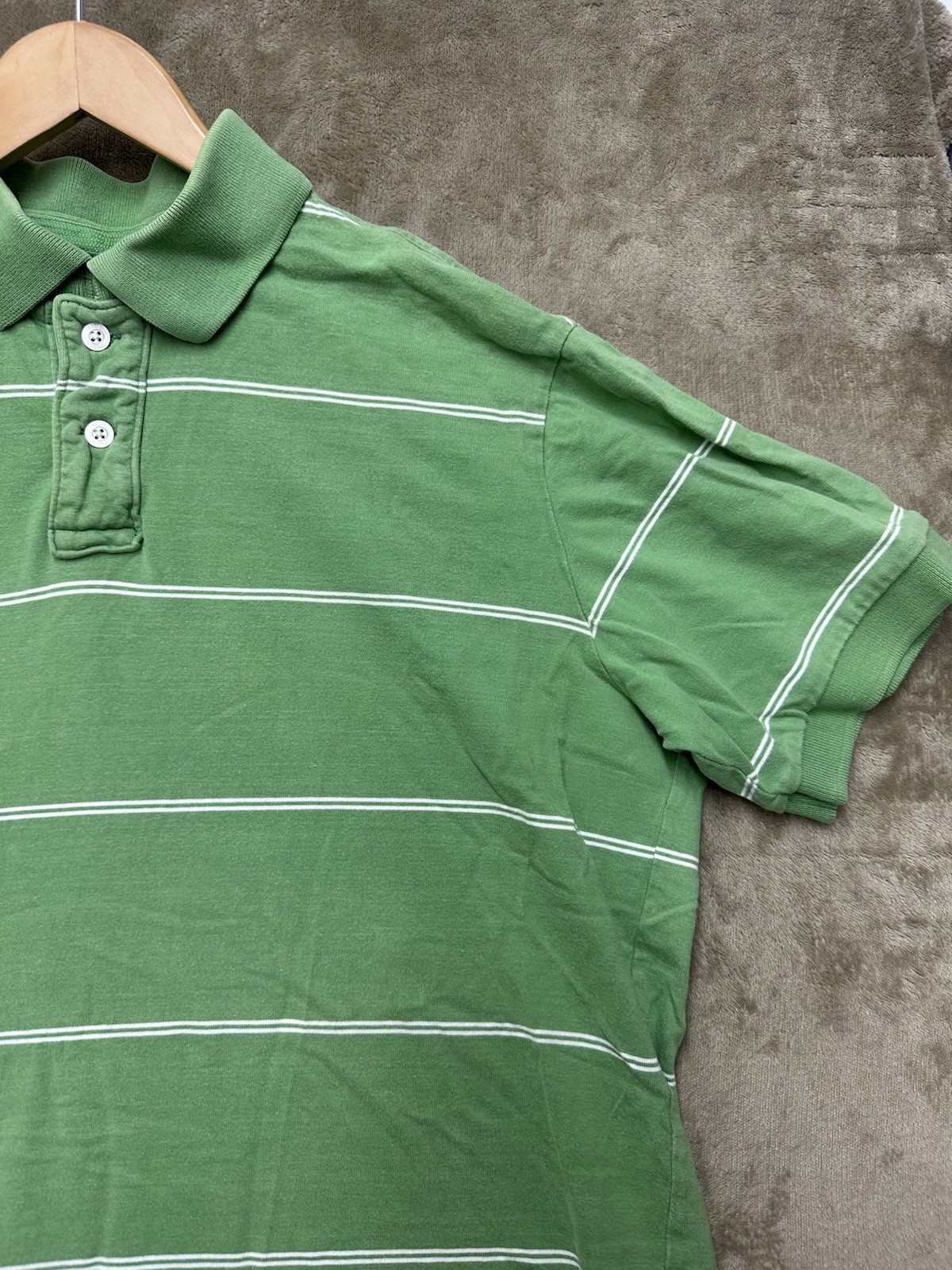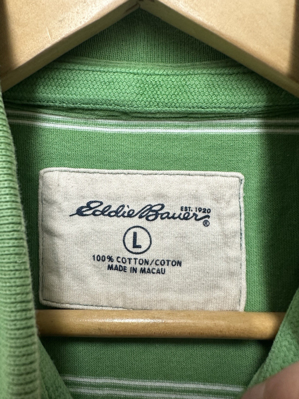как выглядит Eddie Bauer Polo Shirt Mens Size L Green Striped Short Sleeve Cotton фото