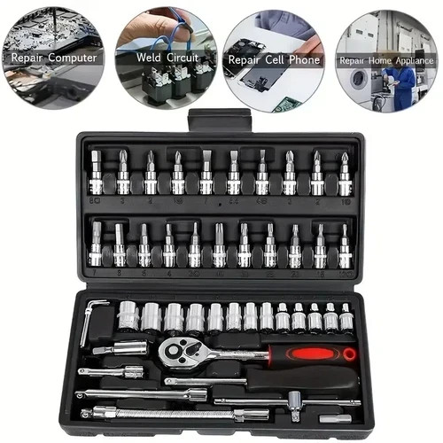 46PCS 1/4 Ratchet Wrench Combination Socket Tool Set Kit Auto Car Repair Tool