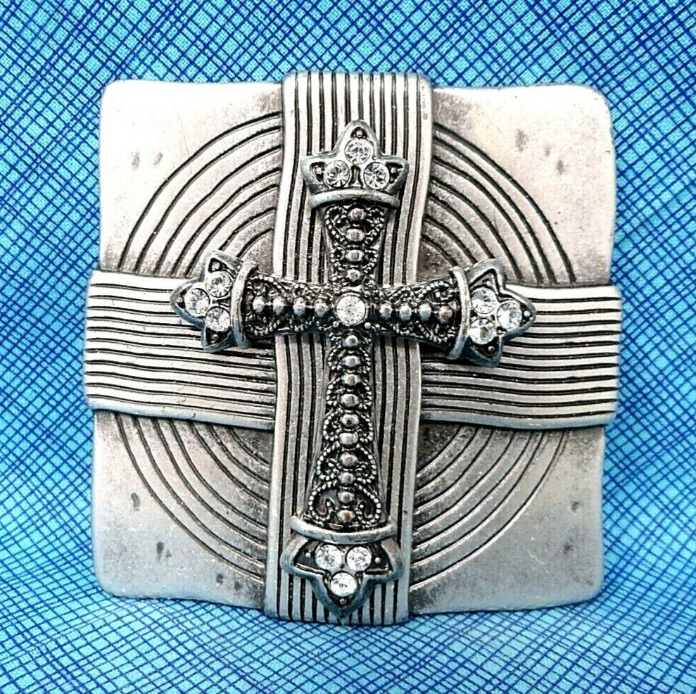 Cross Belt Buckle Ornate Christian Religious Gothic Rhinestones Vtg .PCB200