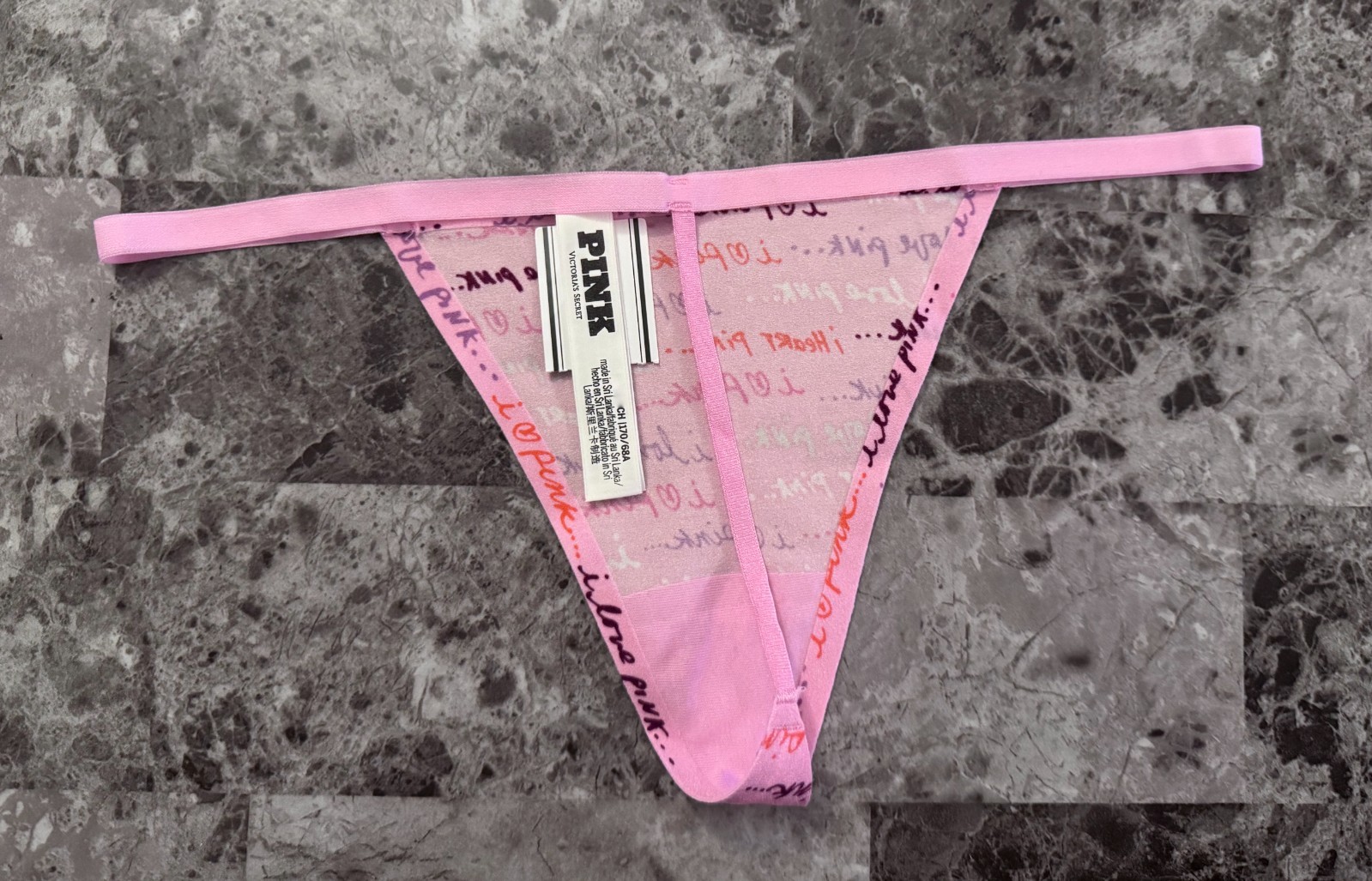 как выглядит NWT VICTORIAS SECRET PINK LOGO HEART BONDED EDGE NO SHOW V STRING PANTIES фото