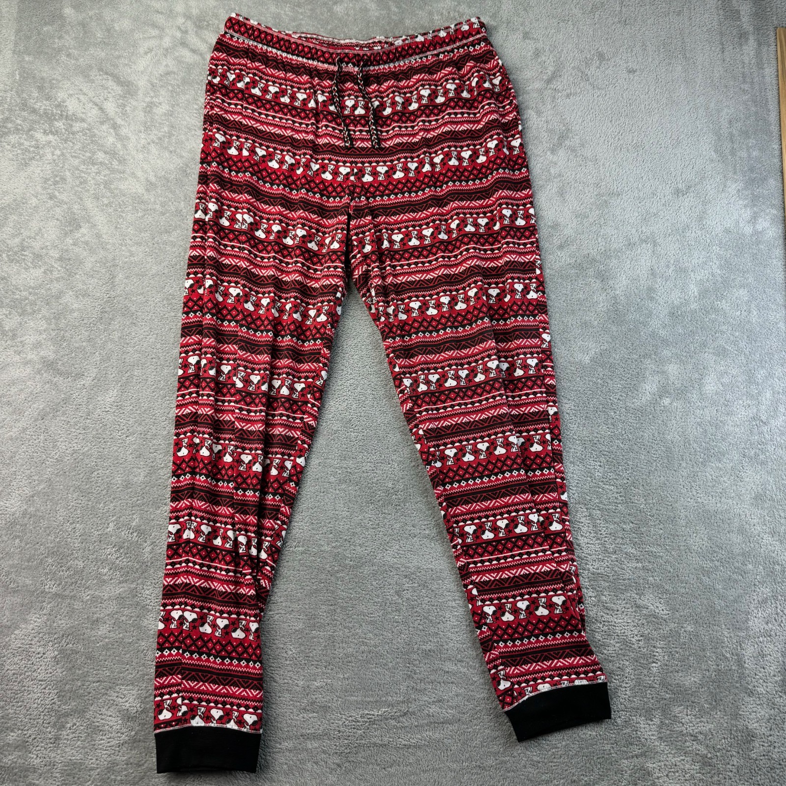 как выглядит Peanuts Pajama Set Womens Medium Red Snoopy Holiday Long Sleeve Henley Cozy фото