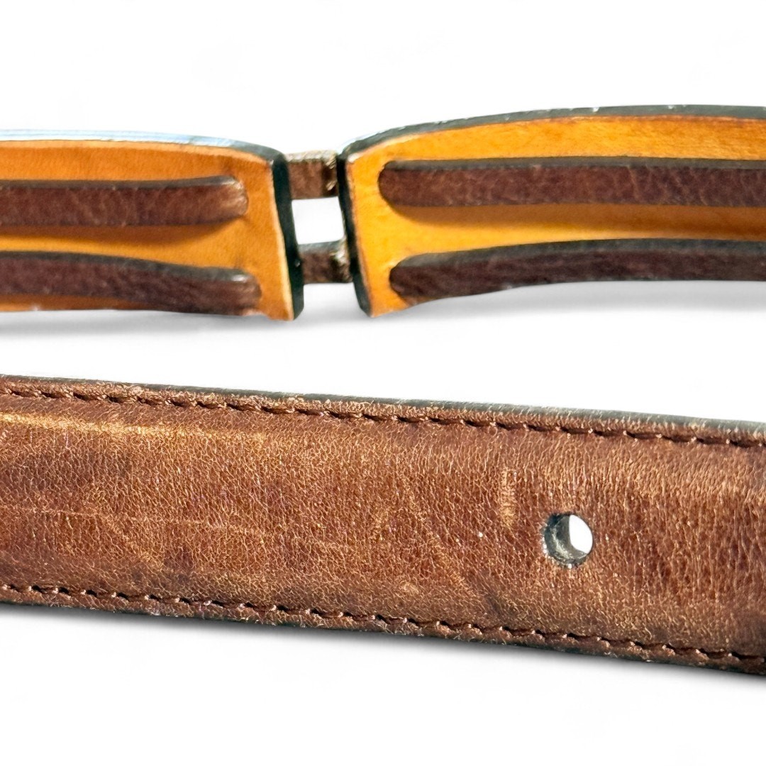 VTG Brighton Leather Belt Multi-Textured Linked Western Y2K Silver Buckle L 34