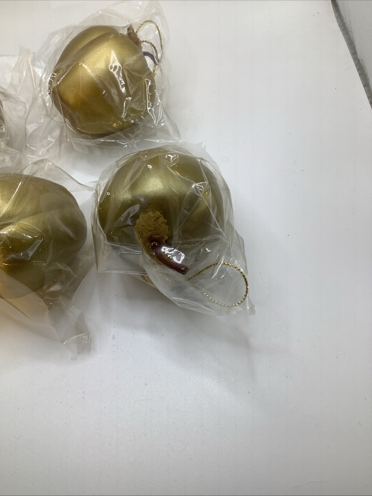 • 5 Gold Plastic Apple Ornaments In Package