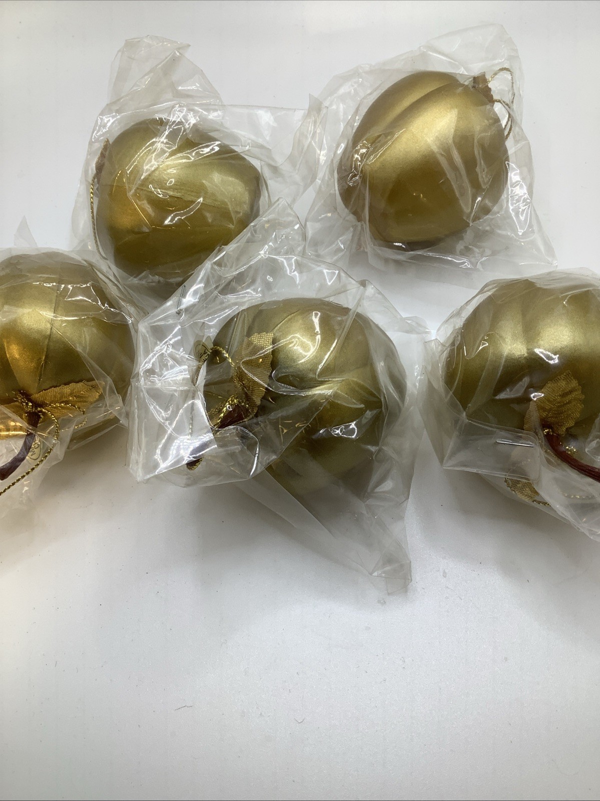 5 Gold Plastic Apple Ornaments In Package