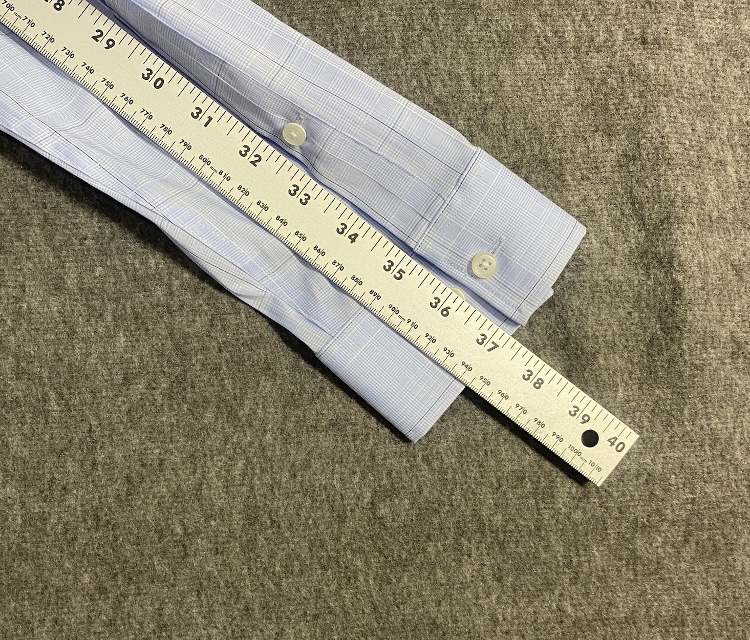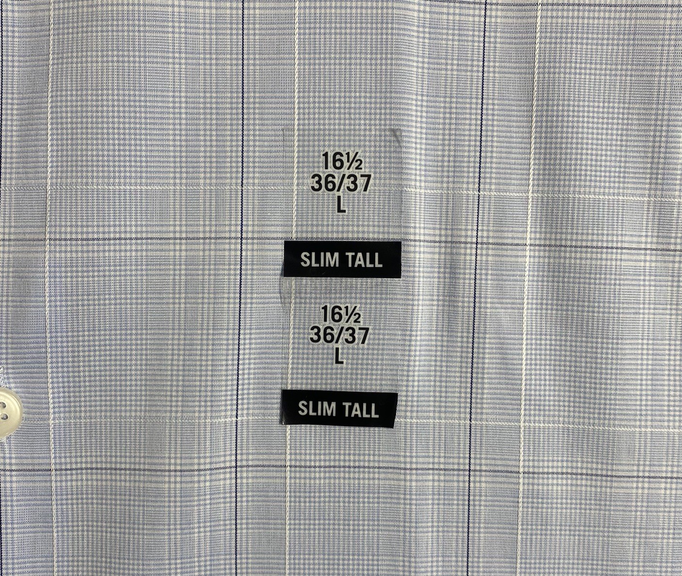 как выглядит Michael Kors Men s L Slim Tall Travel Stretch Dress Shirt Blue Check Long Sleeve фото