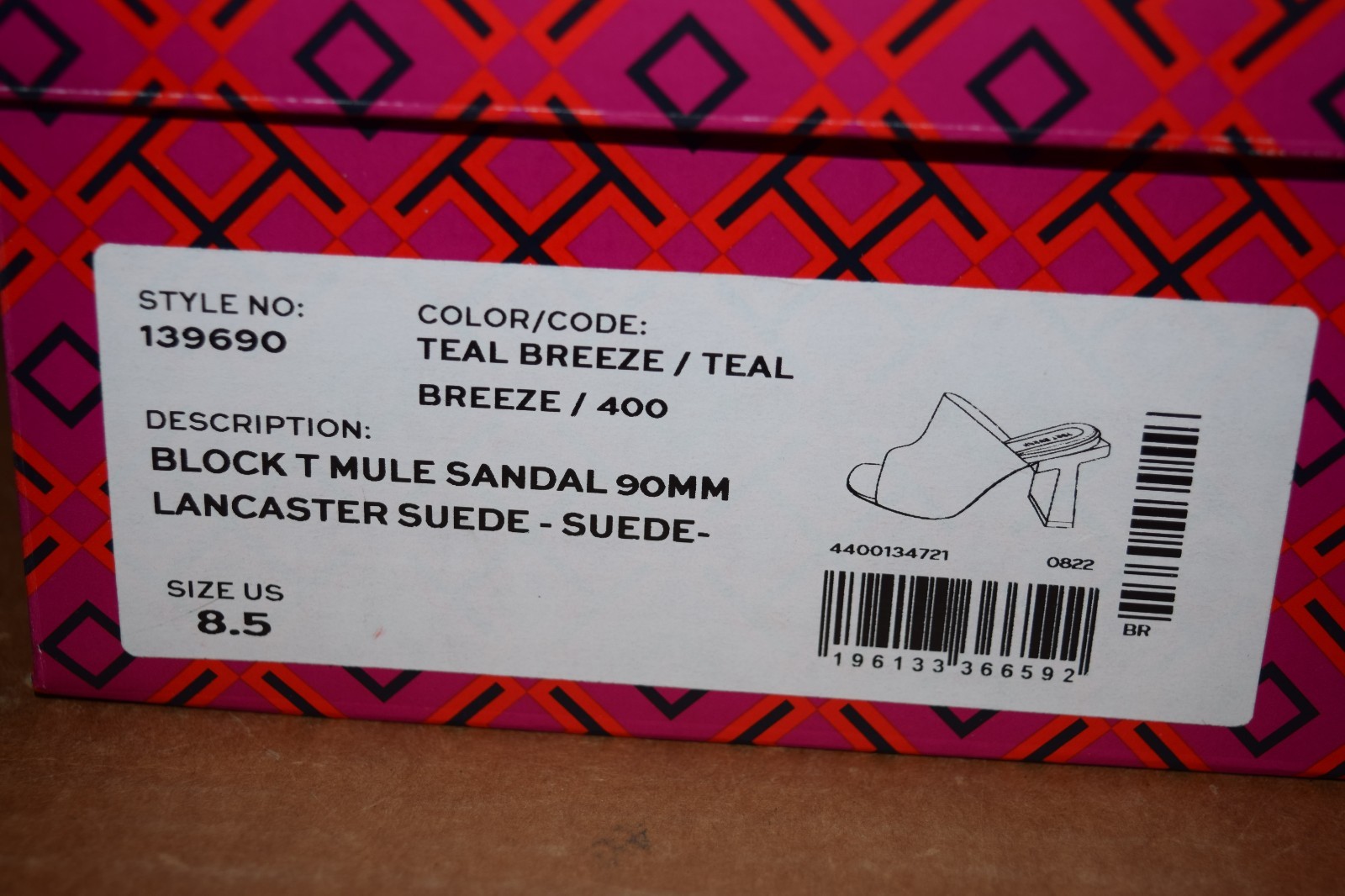 как выглядит TORY BURCH BLOCK T MULE 99MM LANCASTER SUEDE HEEL SANDAL TEAL BREEZE 6.5 7.5 8.5 фото