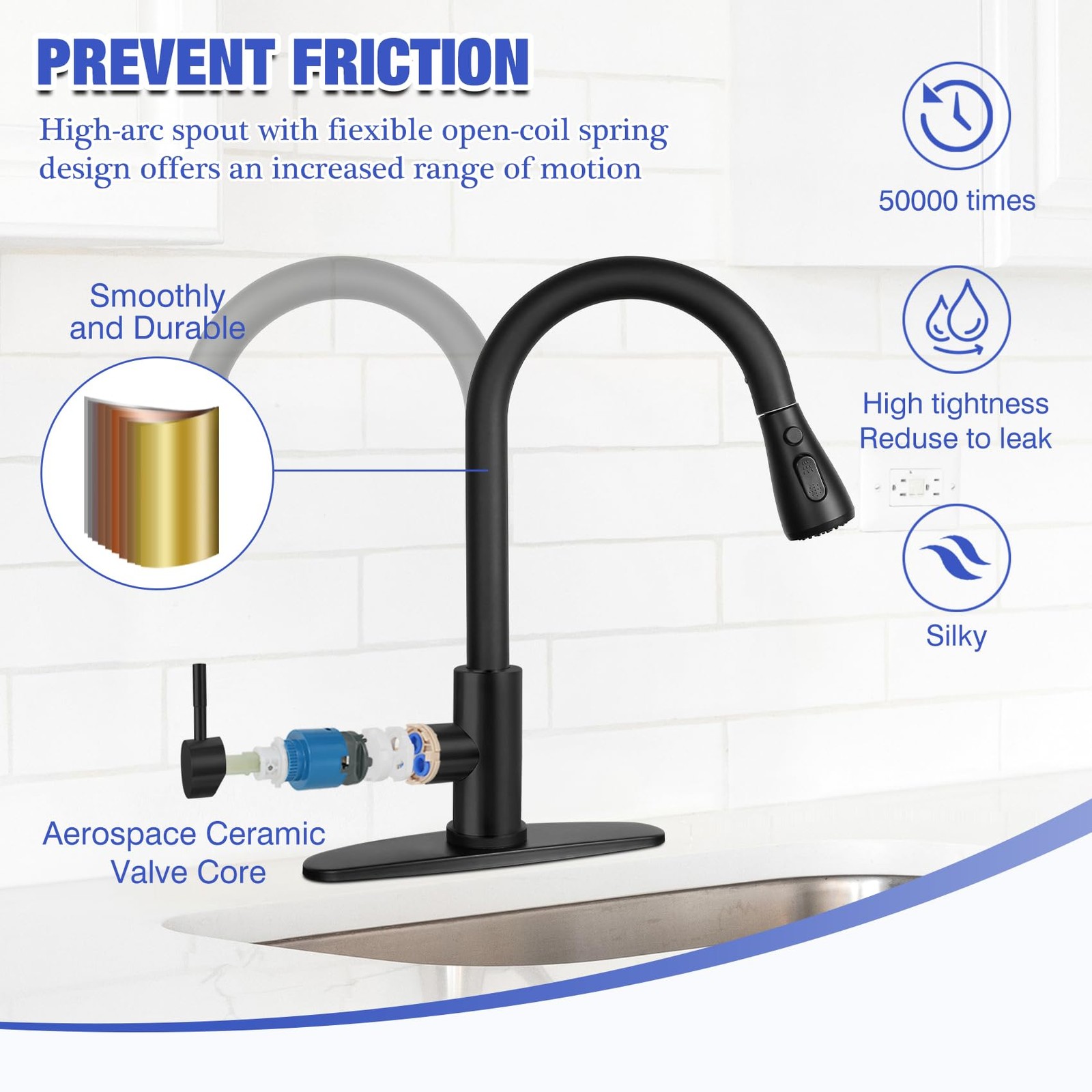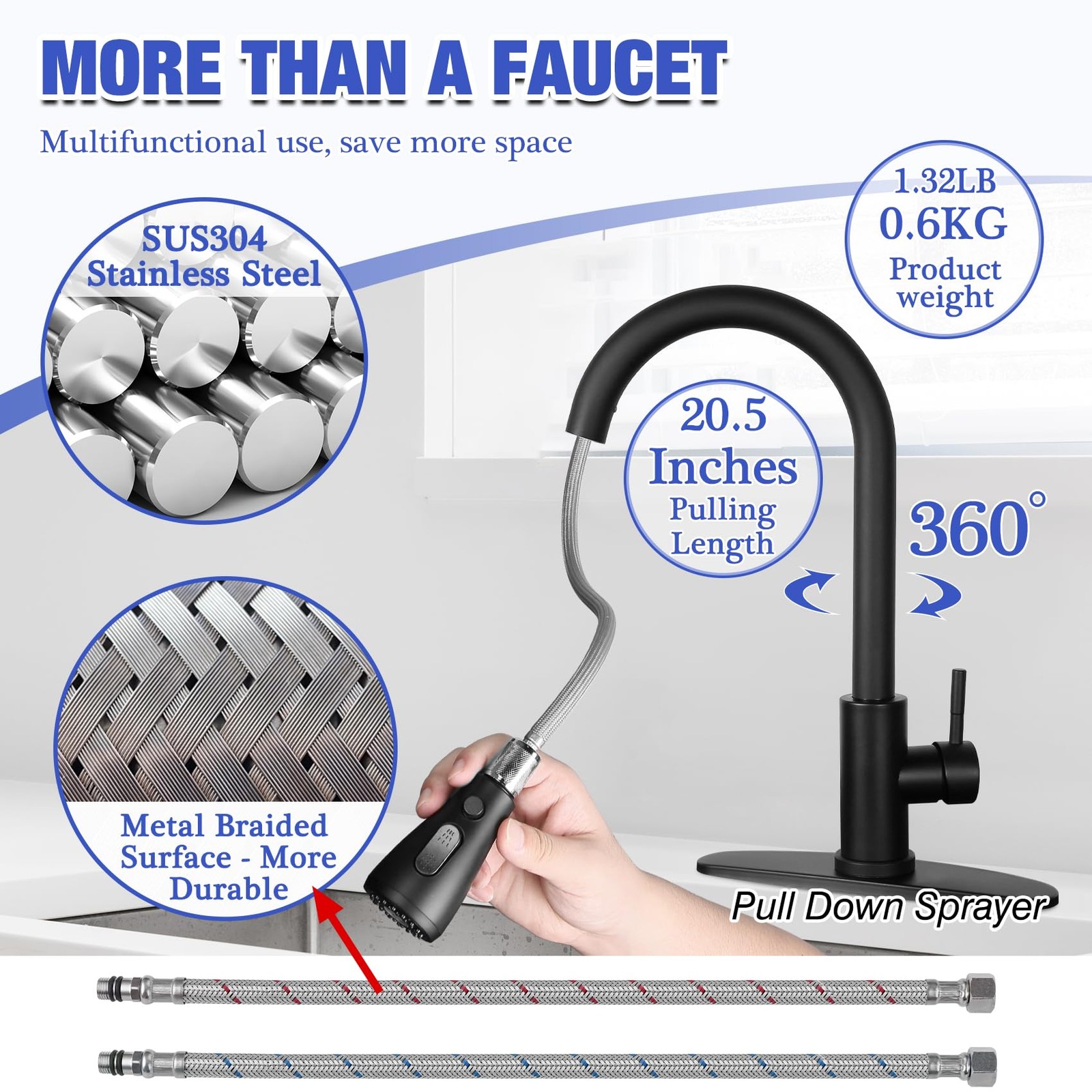Matte Black Kitchen Sink Faucet with Pull Down Spray RV Stainless Steel Kitch...
