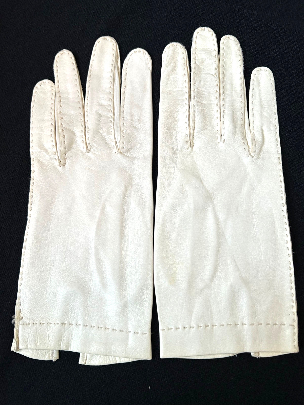 Vintage 1970's White Italian Kid Leather 8.25 Gloves Top Stitched Size 6.5