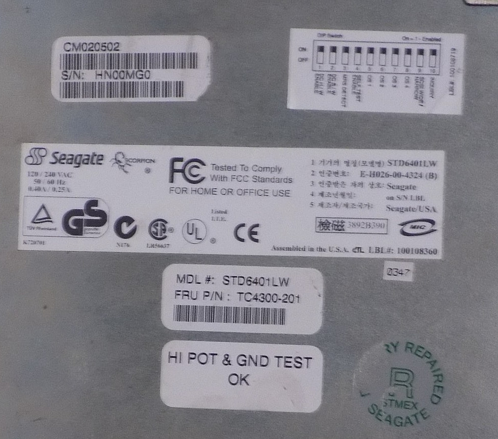 SEAGATE STD6401LW DDS-4 DAT Ultra2 Wide SCSI 68-Pin LVD External Tape Drive