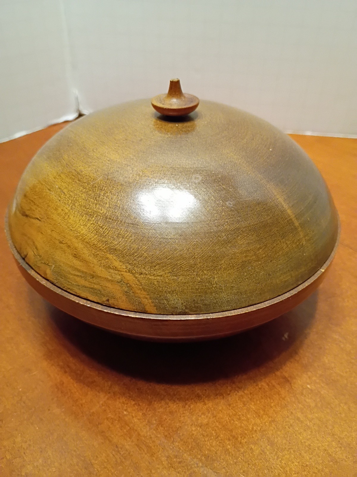 • Vtg MCM Walnut Wood turned bowl with lid 6 Diameter 4" Tall