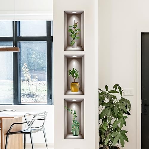 3D Potted Plants Wall Stickers Set of 3 Green Plants Leaves Wall Decals Peel