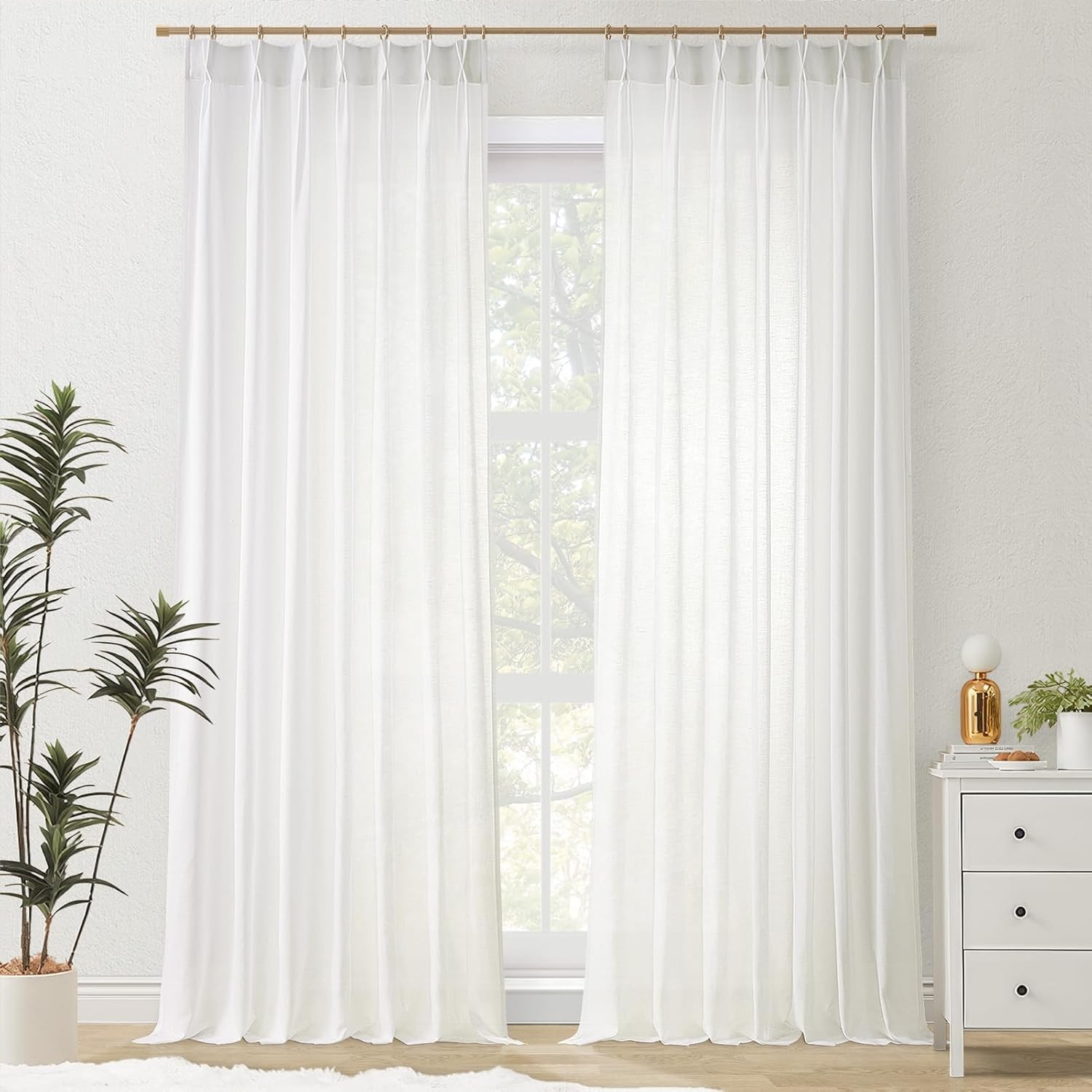 как выглядит Pinch Pleated Sheer Curtains 84 Inches 40"W x 84"L Pack of 2 , White фото