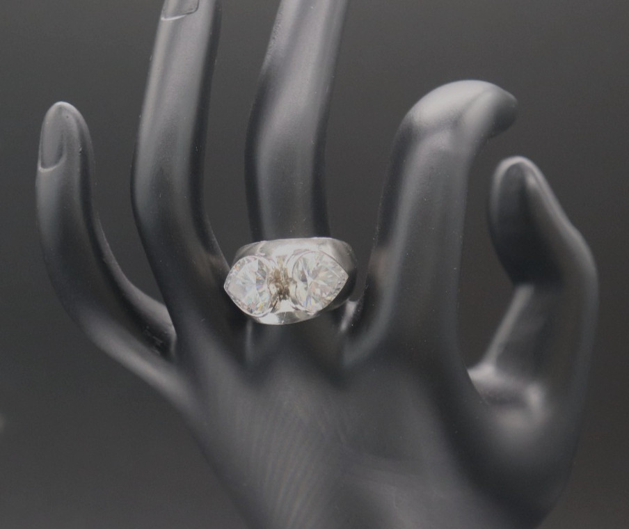 как выглядит Vintage 925 Sterling Silver 2 Lg Heart Shape Cubic Zirconias Statement Ring-Sz 7 фото