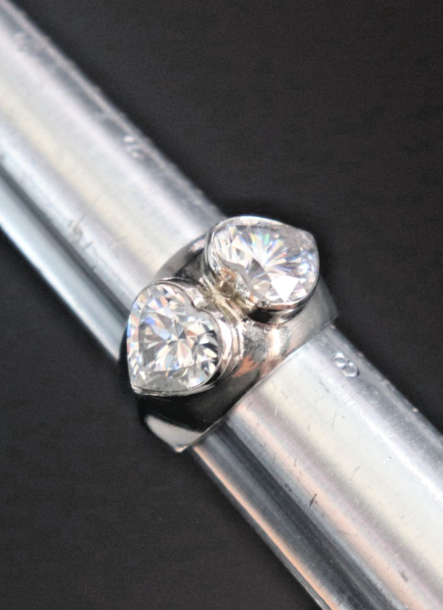 Vintage 925 Sterling Silver 2 Lg Heart Shape Cubic Zirconias Statement Ring-Sz 7