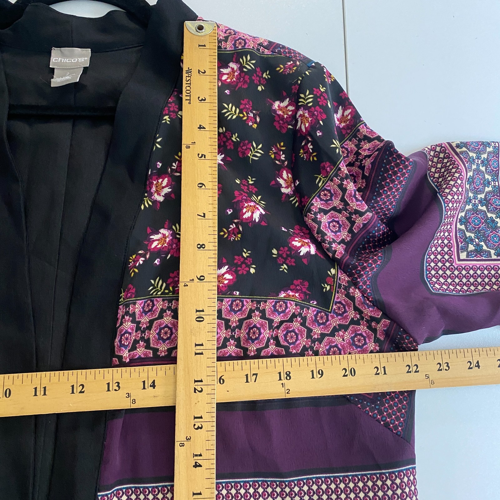 Chicos Patchwork Open Front Jacket Size US Large Floral Multicolor