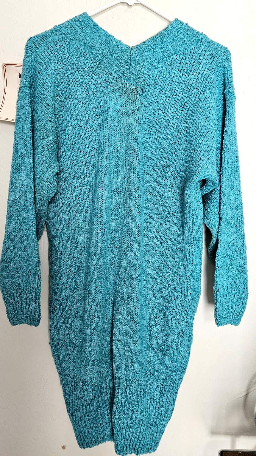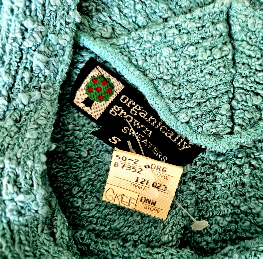 Vintage Organically Grown Sweater tunic boucl type fabric size small 80s blue
