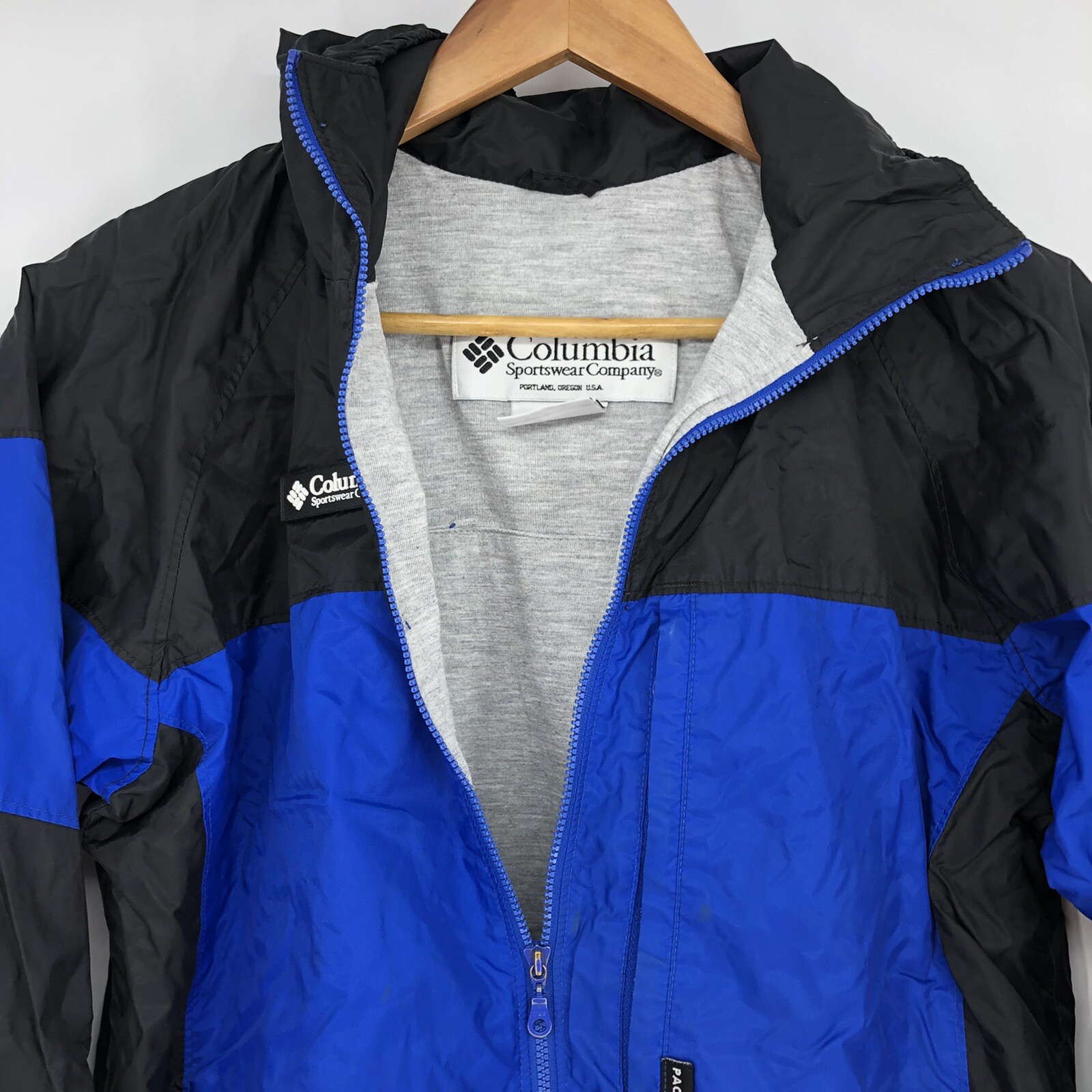как выглядит VTG Columbia Color Block Jersey Lined Packable Nylon Hooded Jacket Youth 14/16 фото