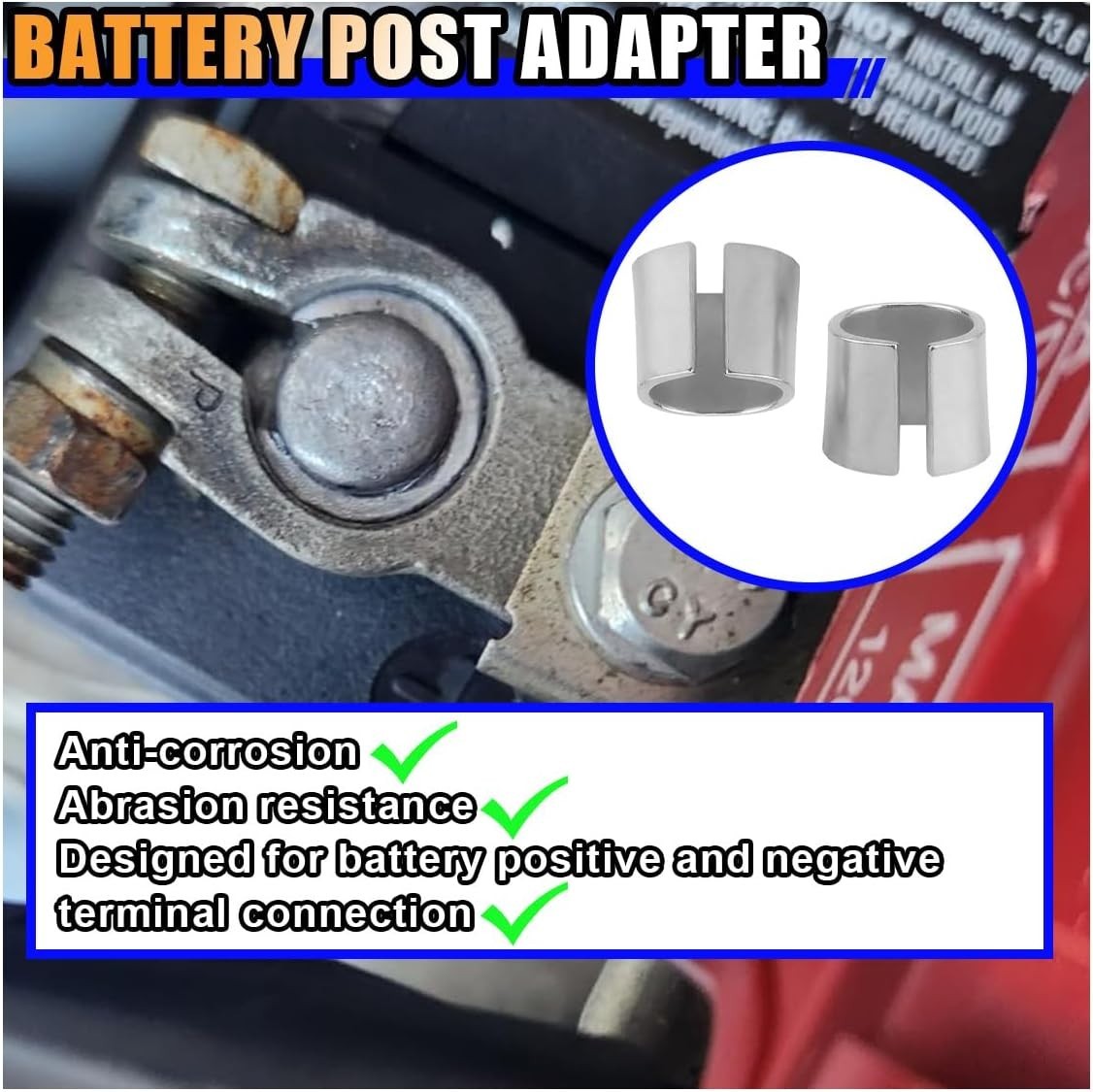 1 Pair Battery Post Shims, Pure Lead Anode Cathode Sleeves, Car Battery Termi...