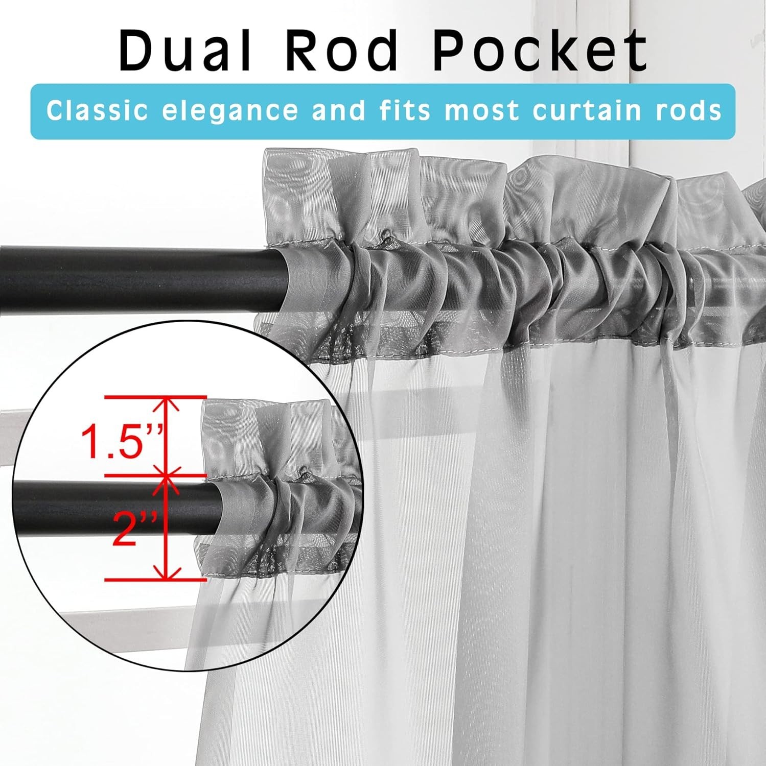 как выглядит Short Grey Sheer Curtains 36 Inches 2 Panels Set - Light Filtering Kitchen Ti... фото