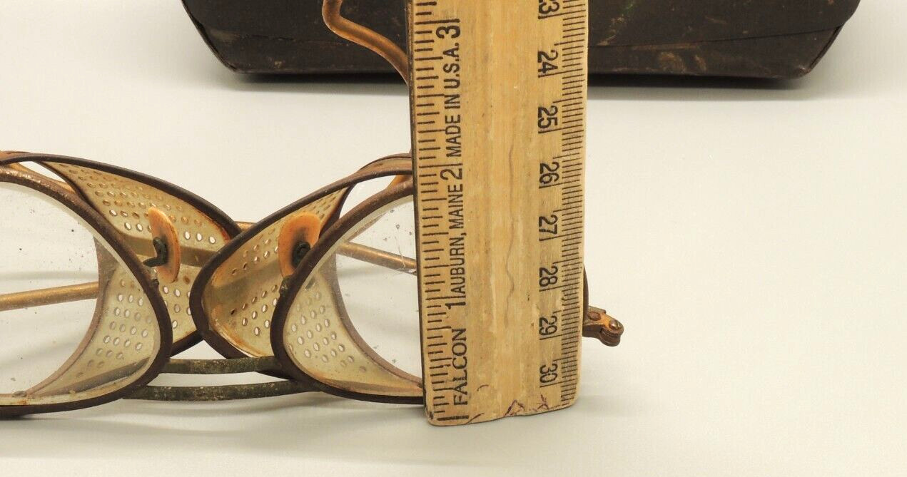 как выглядит Vintag Safety Glasses Goggles Mesh American Optical Hard Metal Case Steampunk AO фото