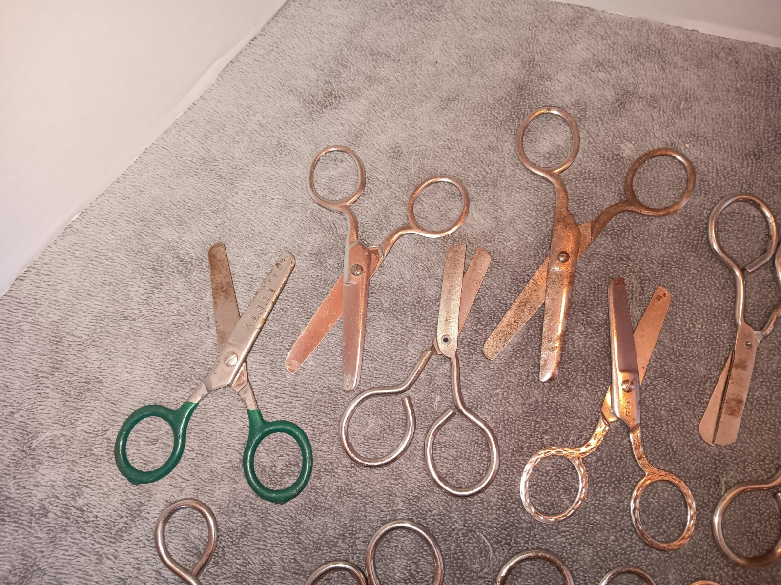 как выглядит Lot of 33 pairs of vintage child size scissors, rounded nose, point nose LHT001P фото
